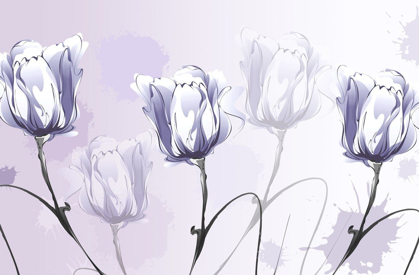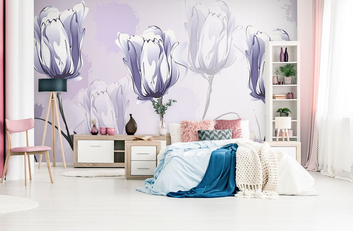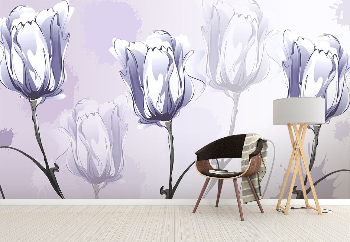 Violet Floral Dutch Flowers Blue Wallpaper Mural,Self-Adhesive Peel And Stick 3D Wall Paper,Designer Removable Wall Decor
