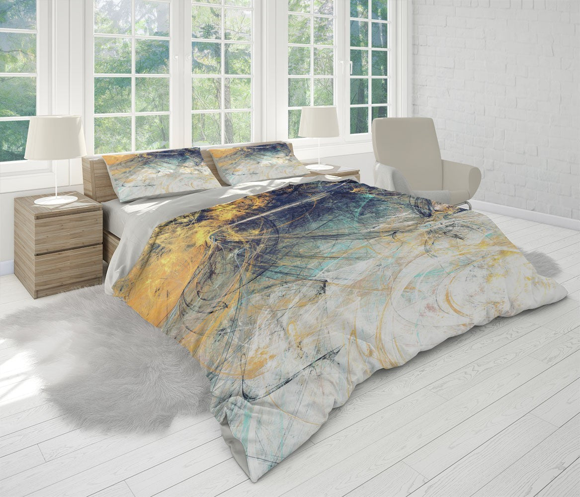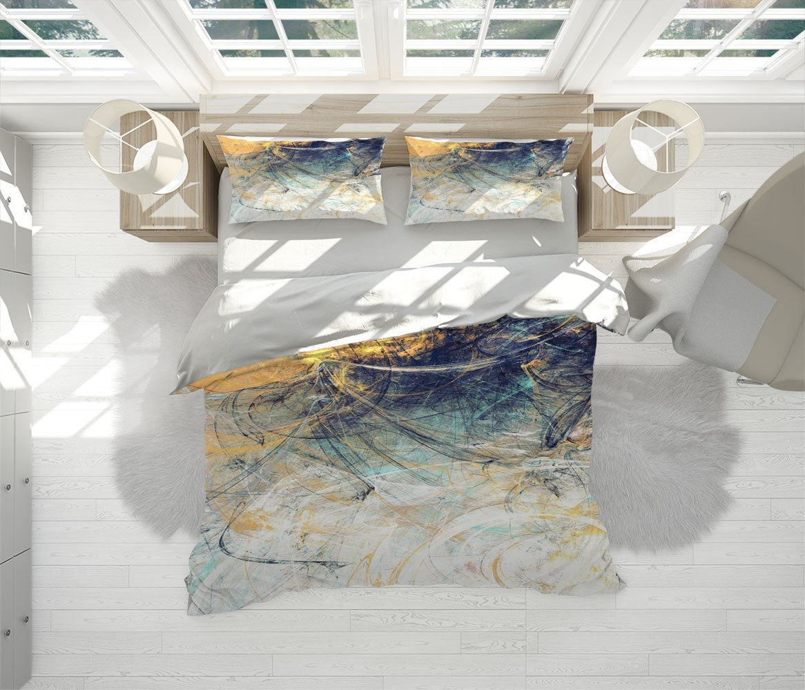 Visual Art Duvet Cover Set W Pillow Cover, Blue Art Abstract 3D Quilt Cover, Single Double Queen King Size Doona Cover