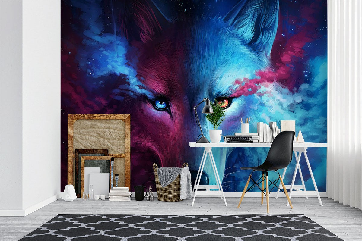 Wolf Animals Wild Animals Black Wallpaper Mural,Self-Adhesive Peel And Stick 3D Wall Art,Designer Bedroom Wall Decor