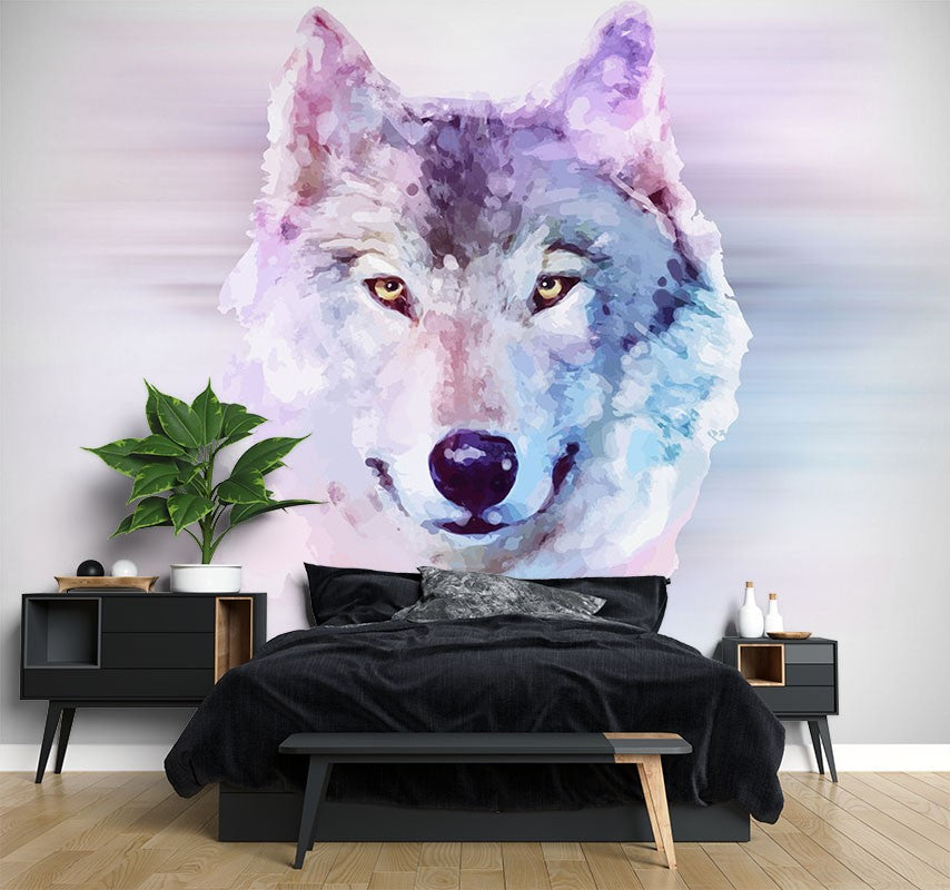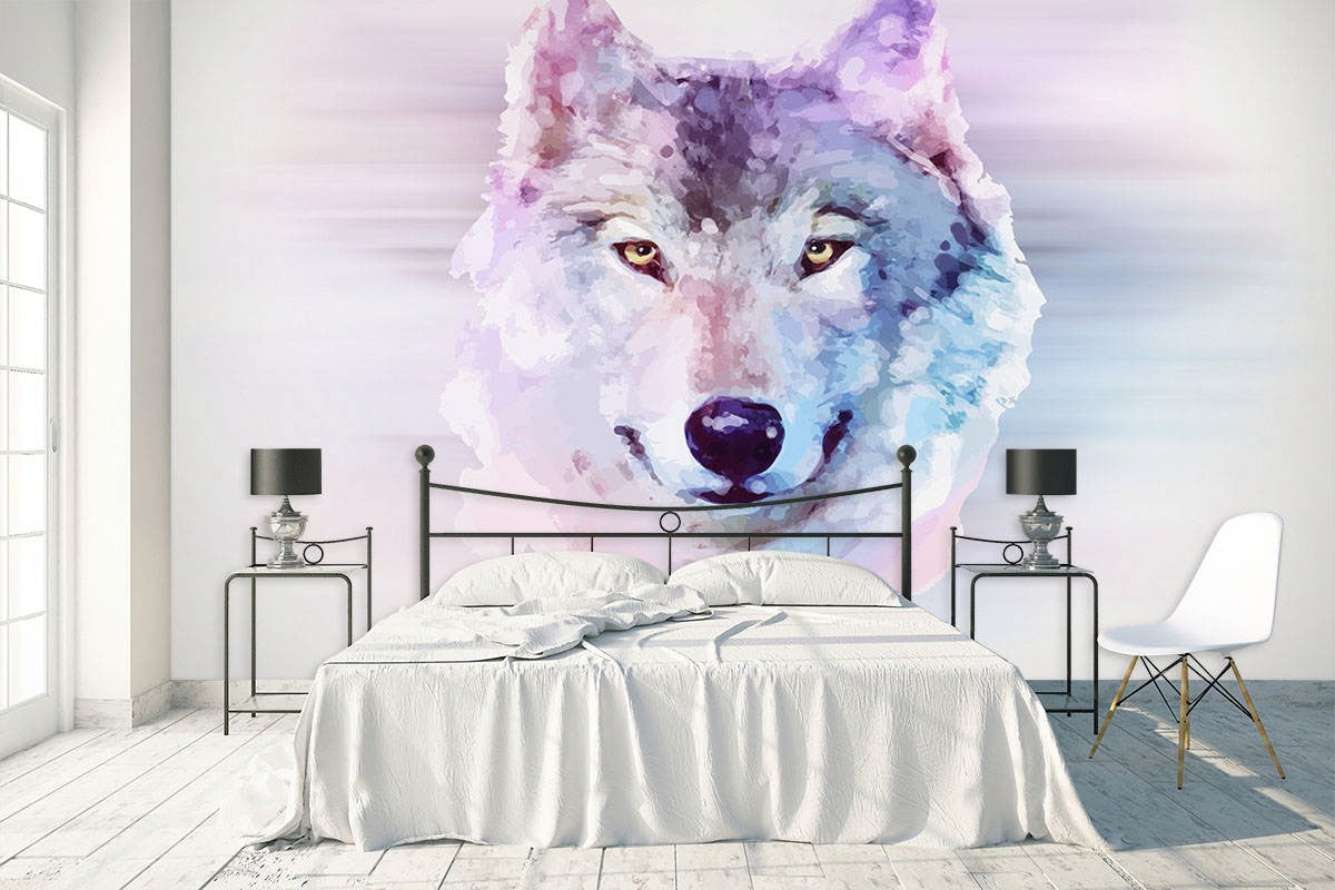 Wolf Animals Wild Animals White Wallpaper Mural,Self-Adhesive Peel And Stick 3D Wall Mural,Removable Bedroom Wall Decor
