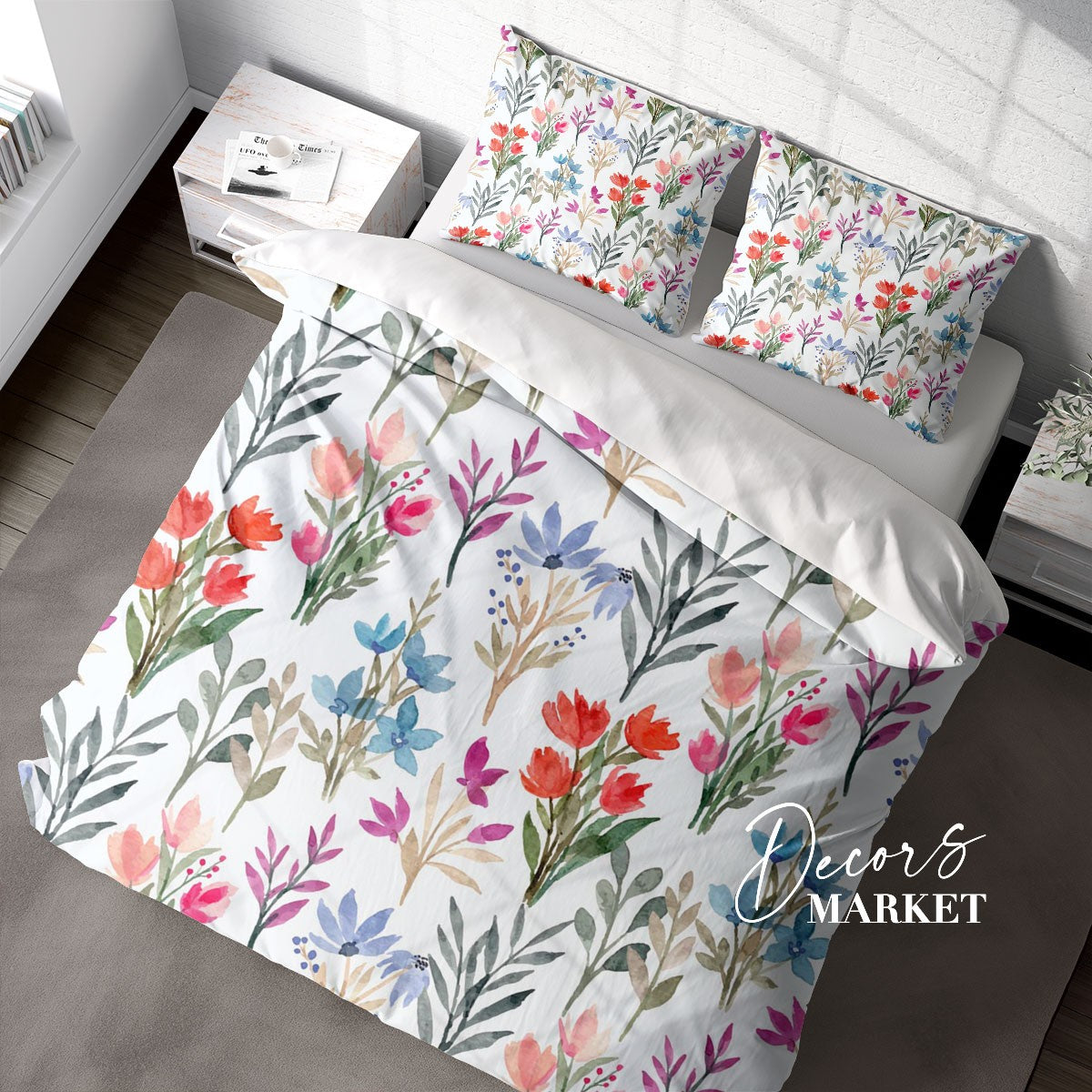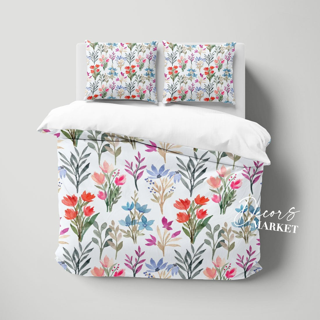 Watercolor Blossoms Duvet Cover Set w Pillowcases, Colorful Floral Flowers 3D Quilt Cover, 3pc Single Double Queen King Size Doona Cover