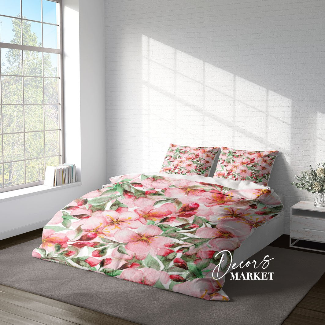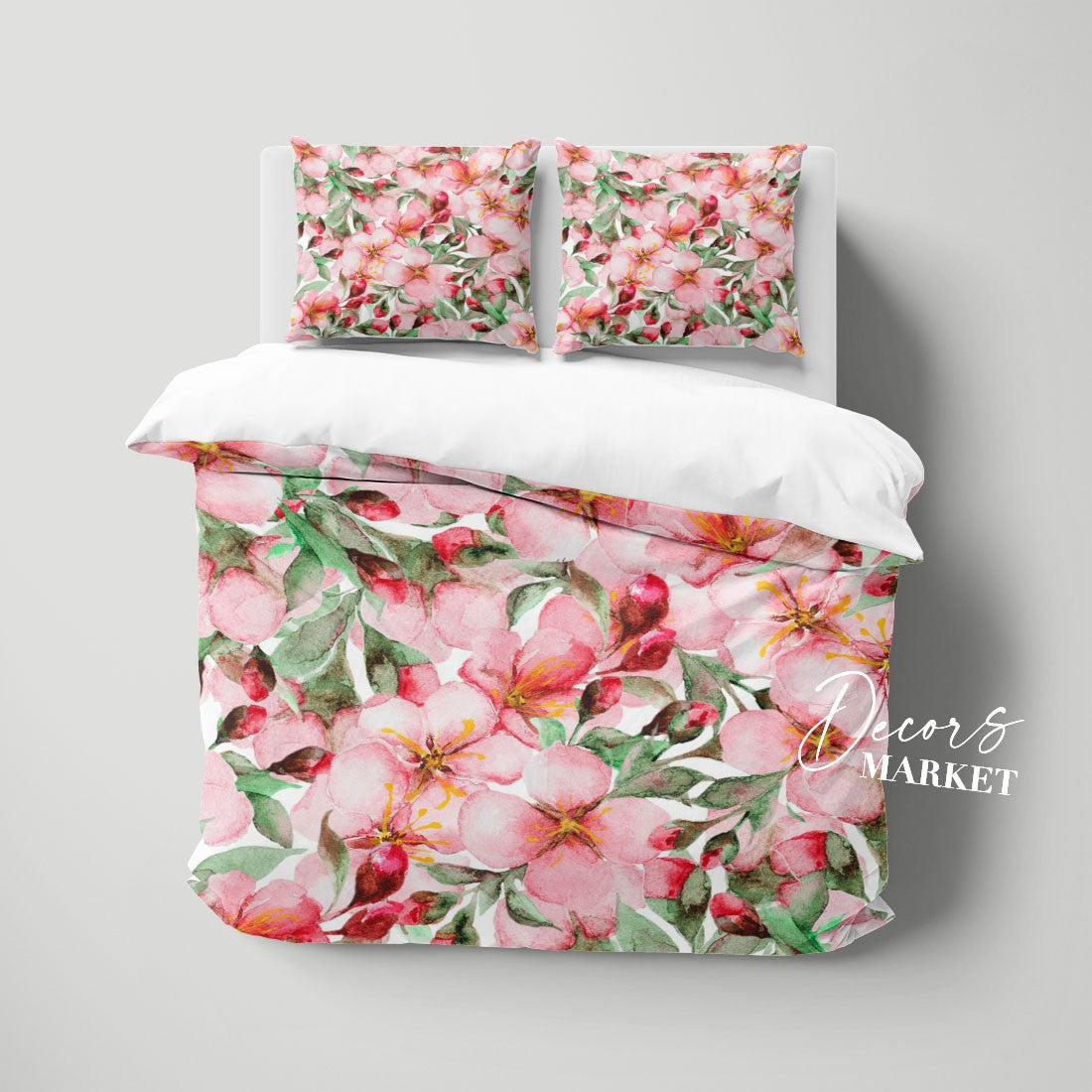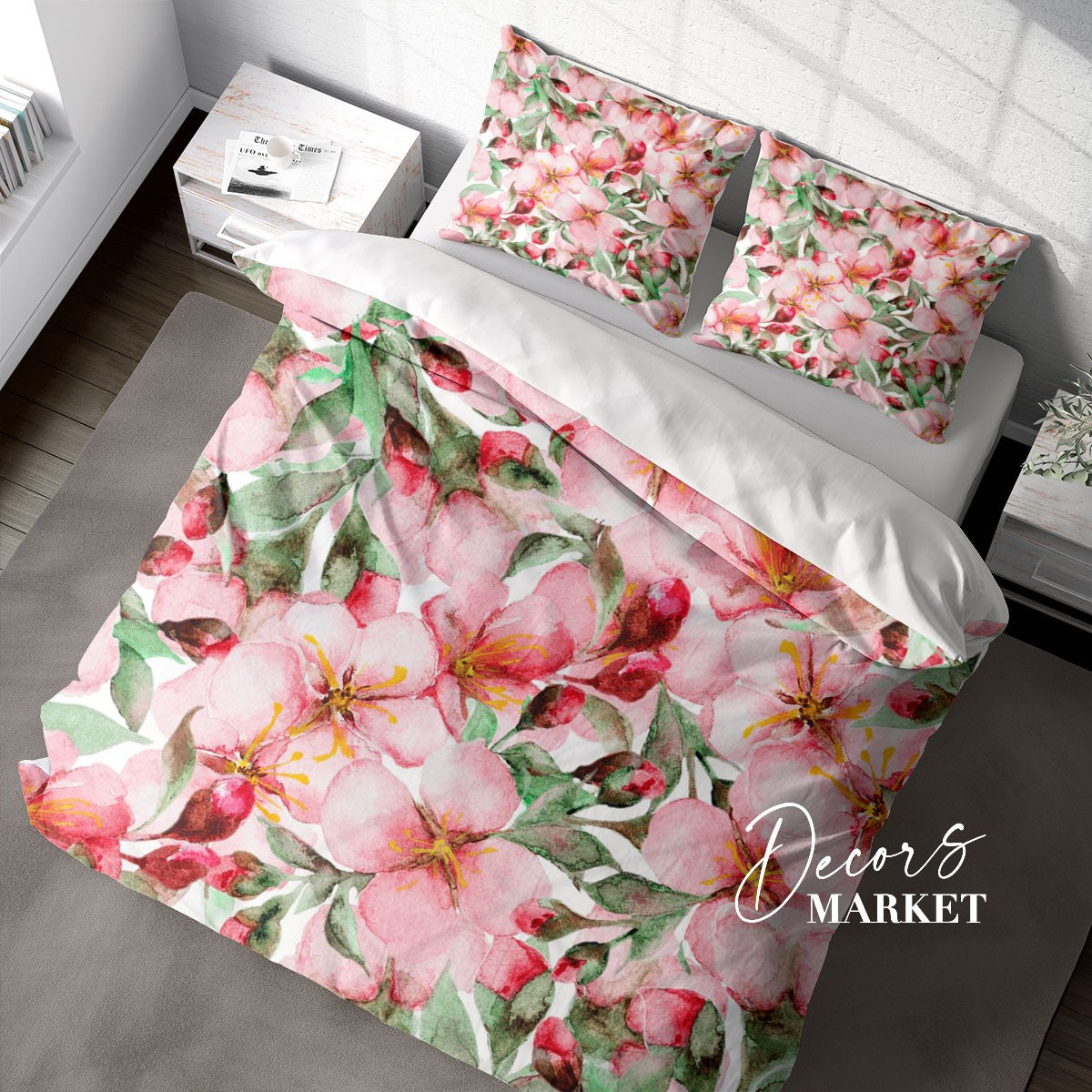 Watercolor Blossoms Duvet Cover Set w Pillowcases, Pink Floral Patterns 3D Quilt Cover, 3pc Single Double Queen King Size Doona Cover