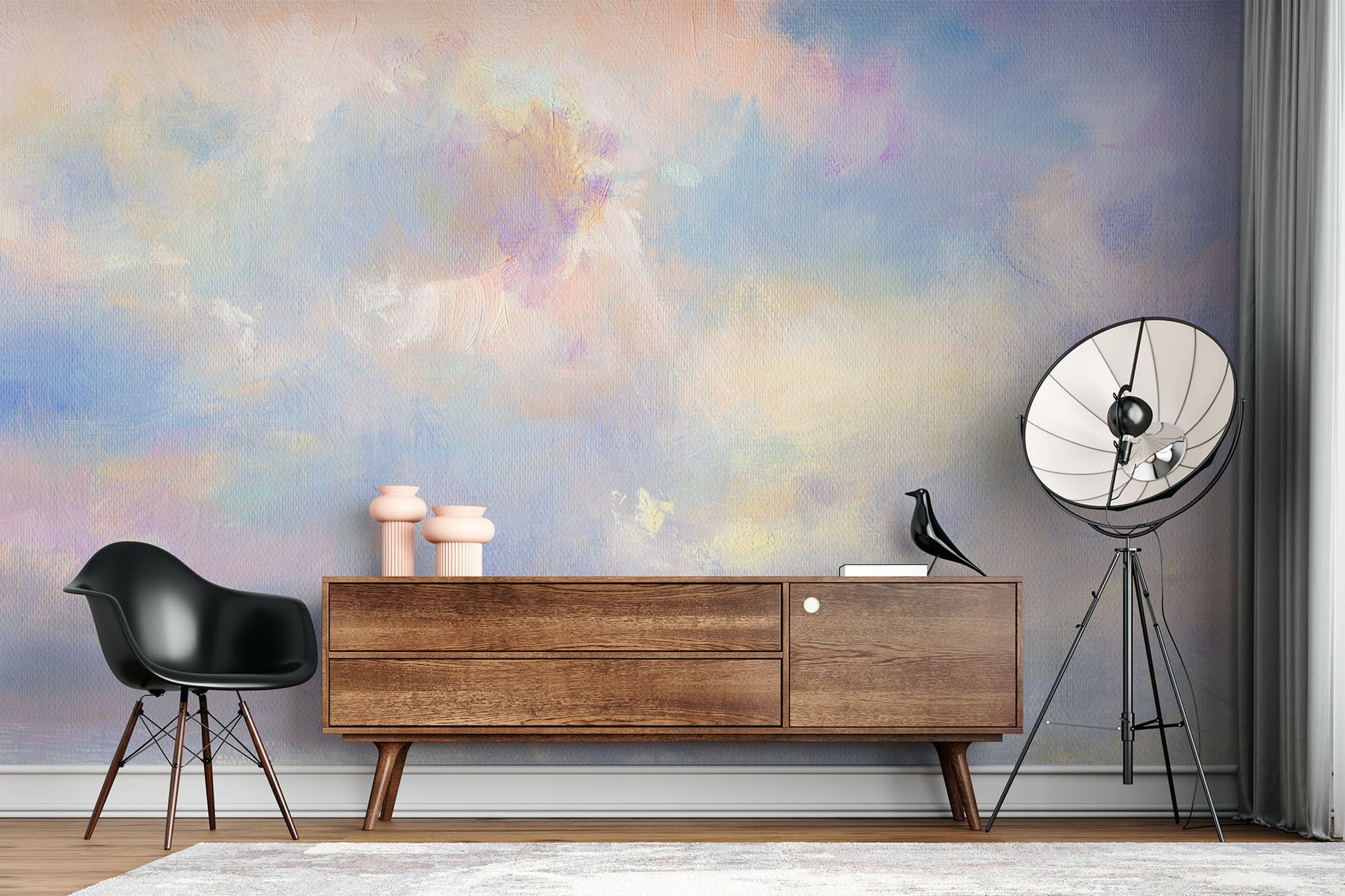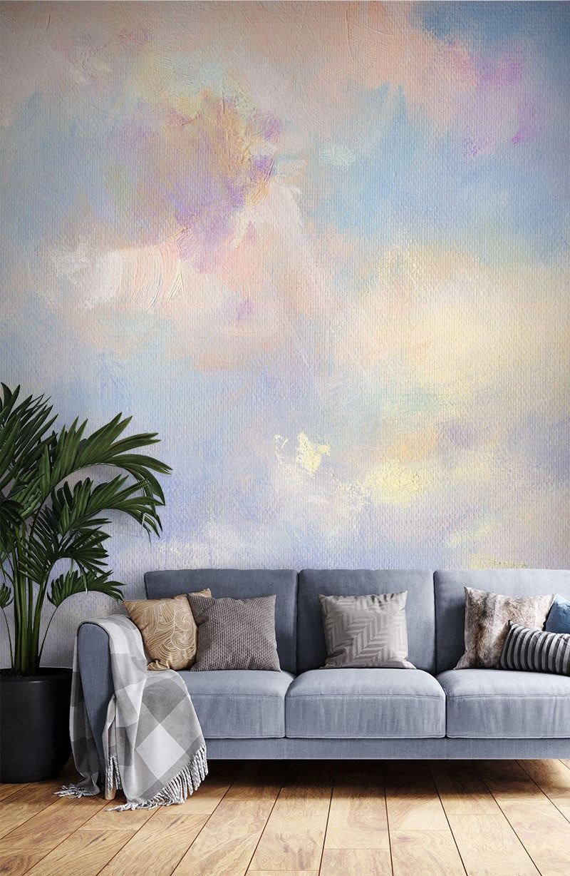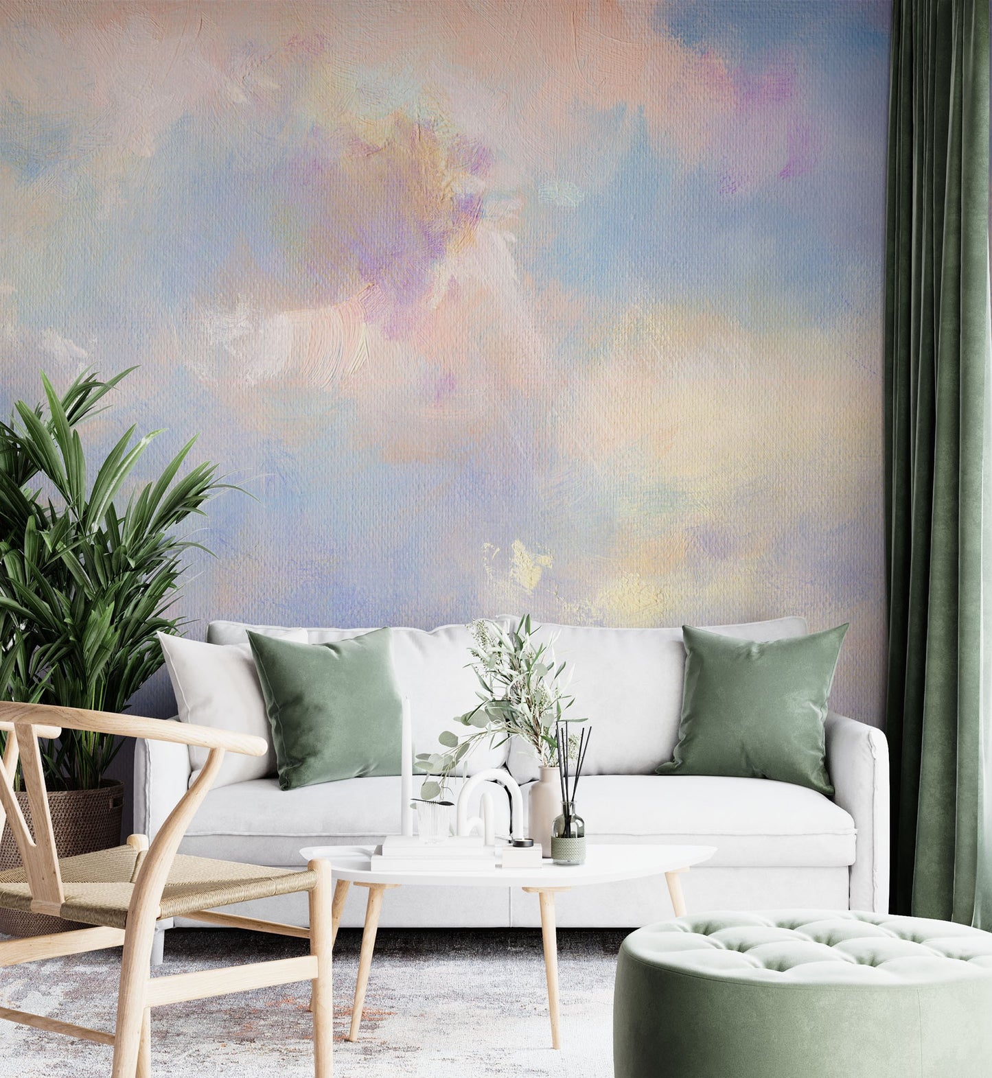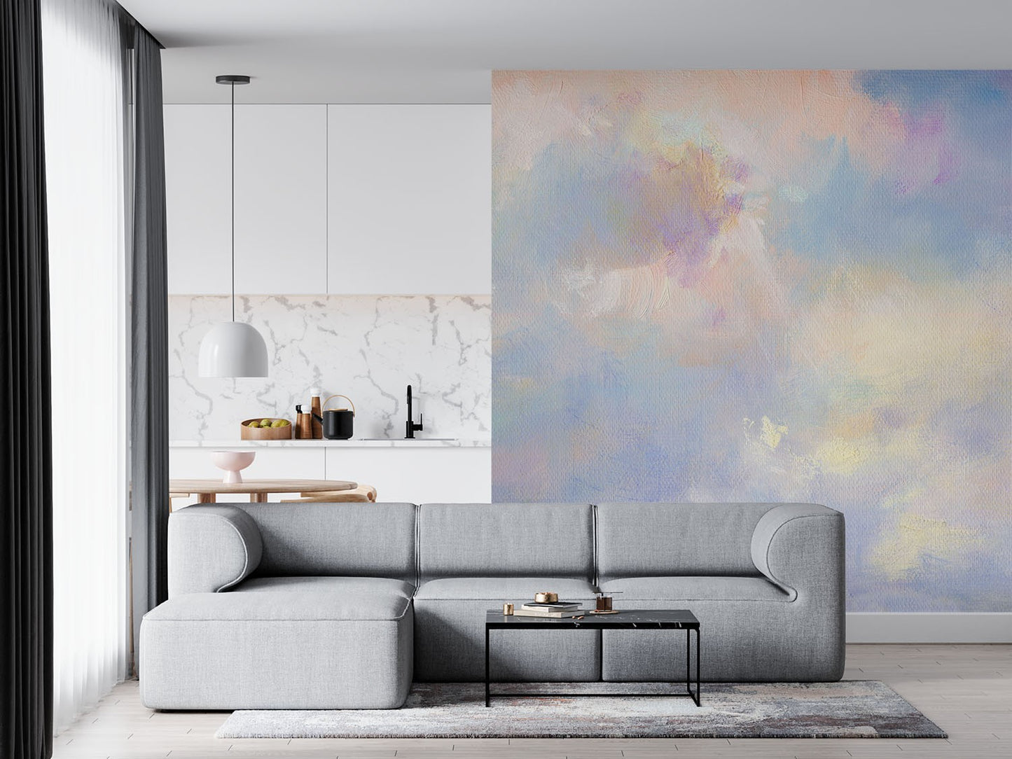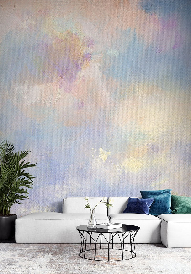 Watercolor Clouds Kids Colorful Creamy Wallpaper Mural