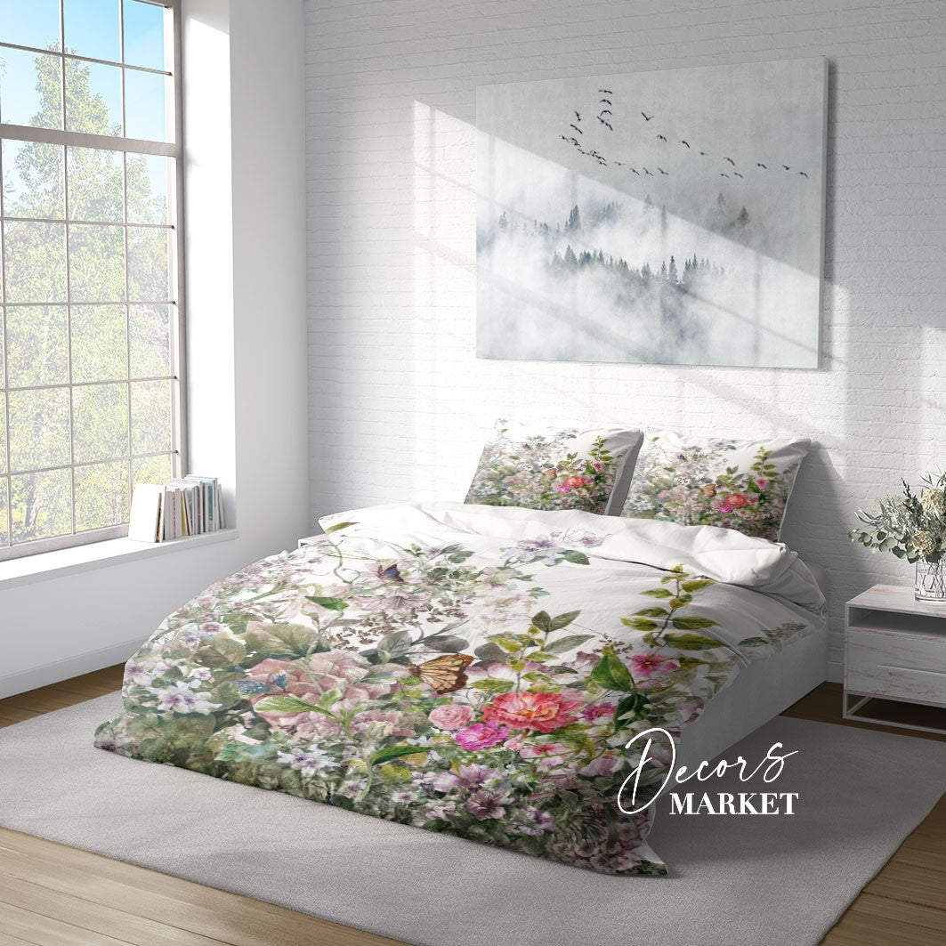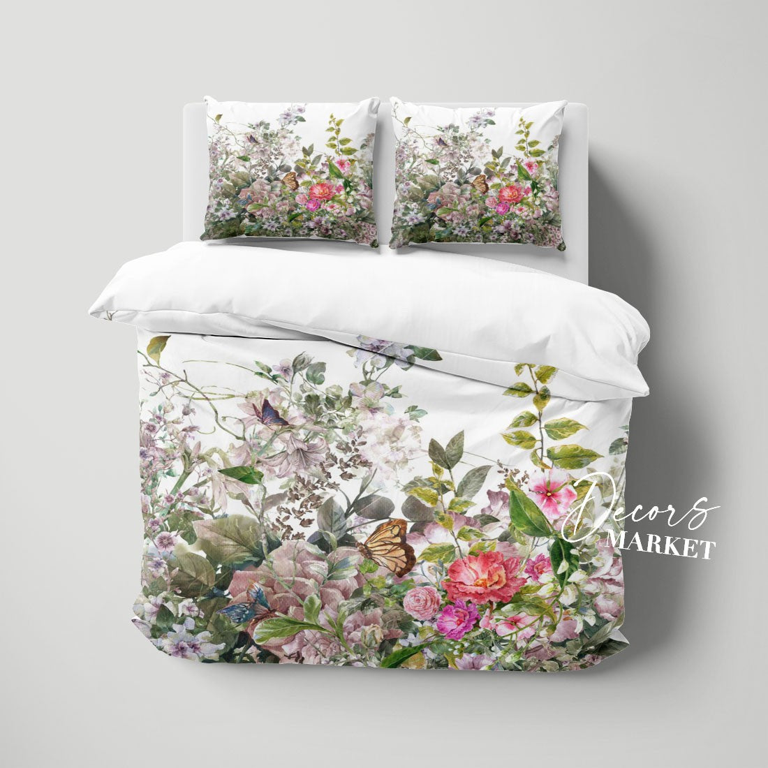 Watercolor Garden Duvet Cover Set w Pillowcases, Green Floral Flowers 3D Quilt Cover, 3pc Single Double Queen King Size Doona Cover