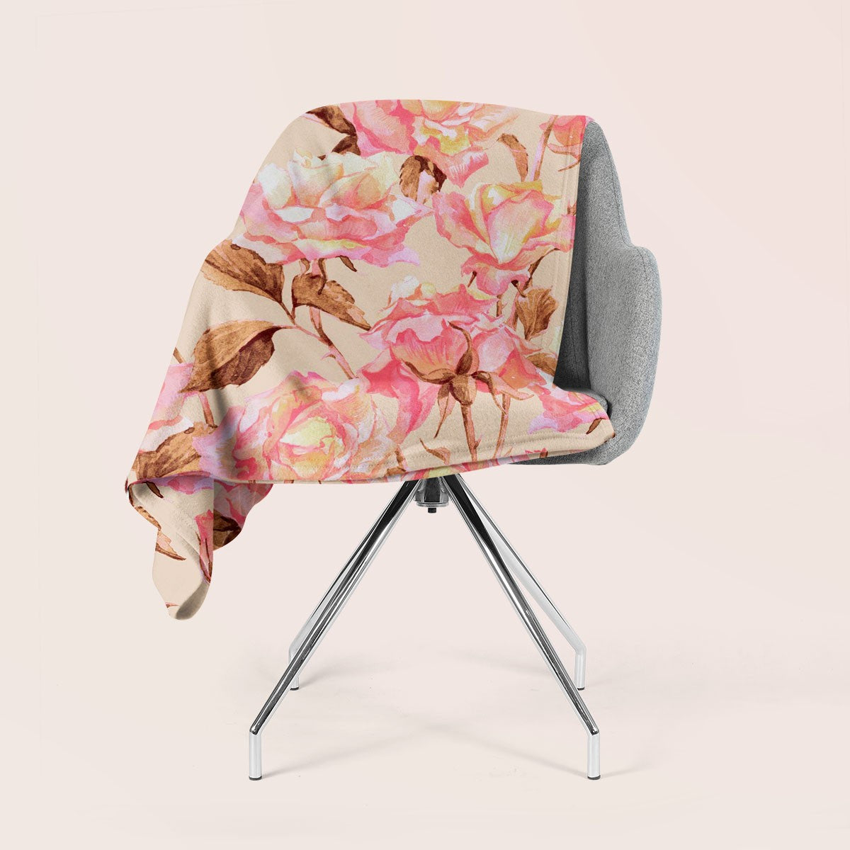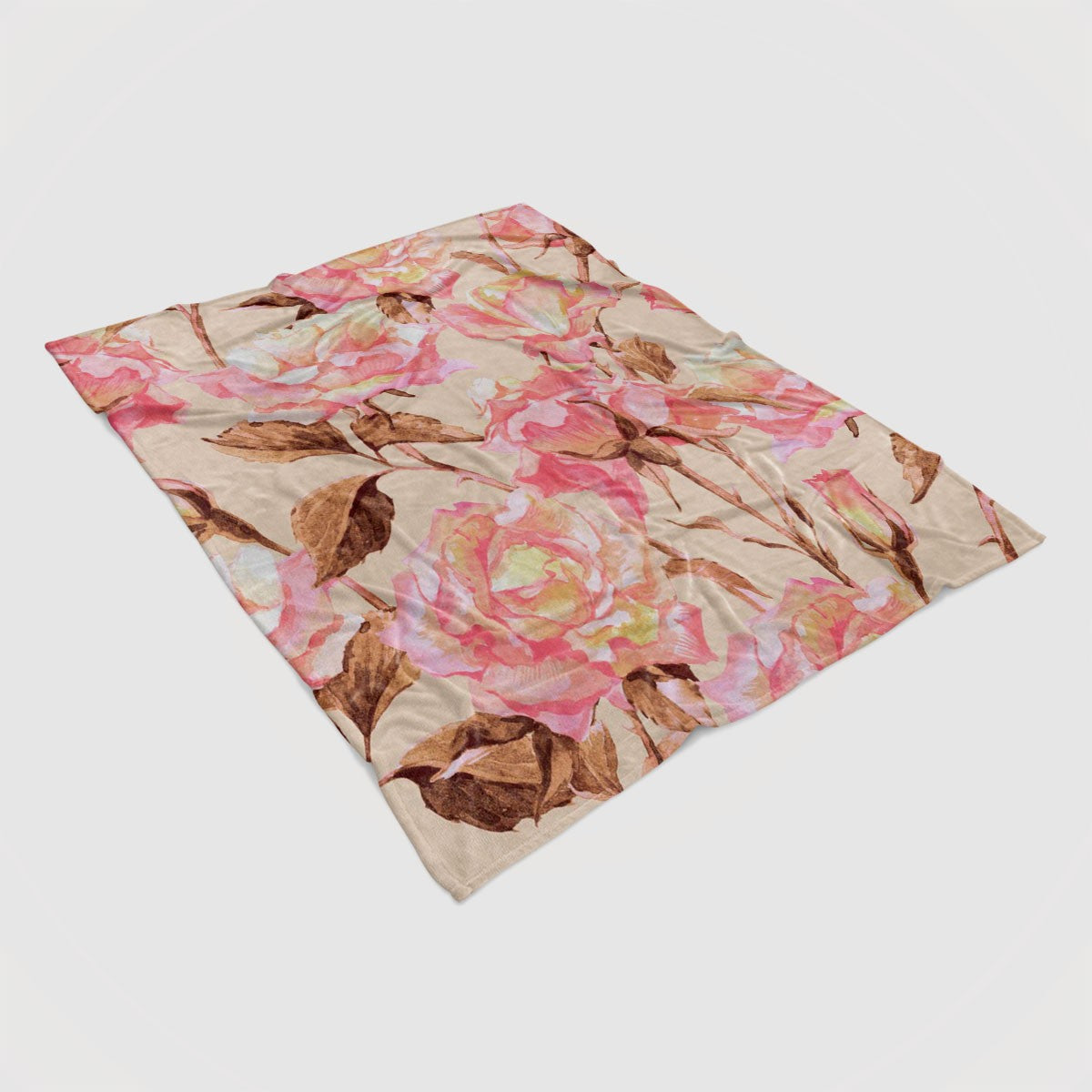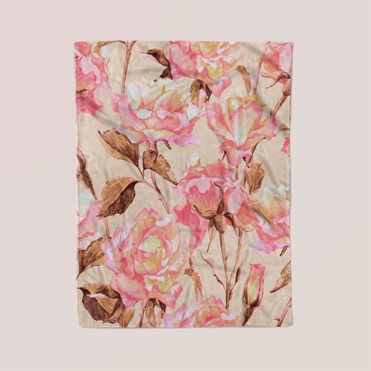 Watercolor Garden Roses Floral Patterns Pink Personalized Throw Blanket Custom Fleece Sherpa Throw