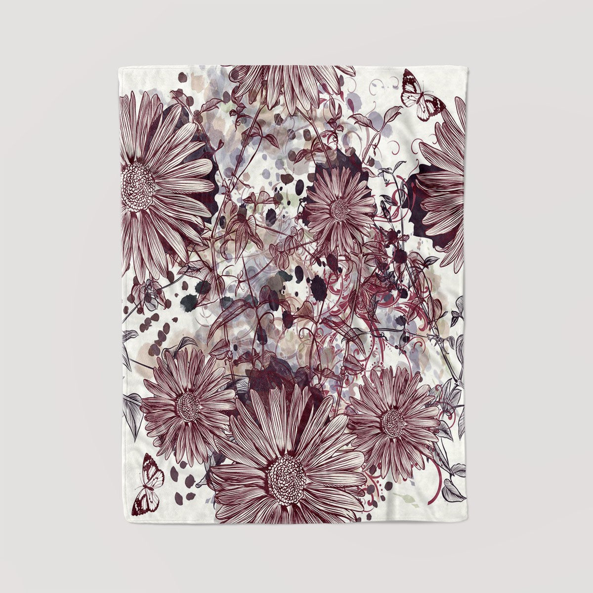 Watercolor Pastel Daisy Floral Flowers Pink Personalized Throw Blanket Custom Fleece Sherpa Throw
