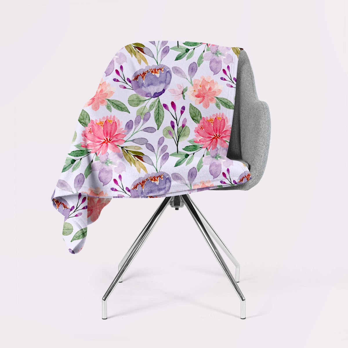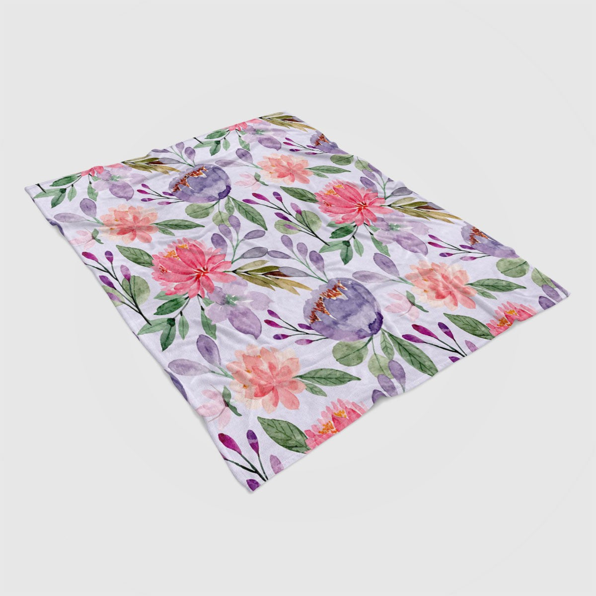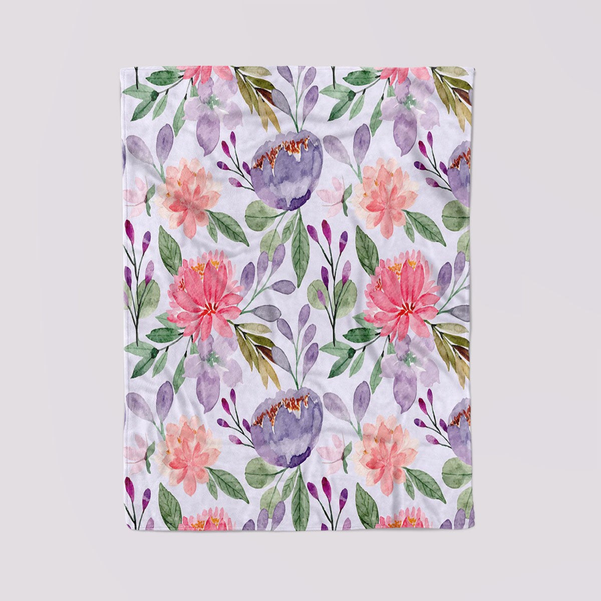 Watercolor Pastel Leaf Floral Patterns Purple Personalized Throw Blanket Custom Fleece Sherpa Throw