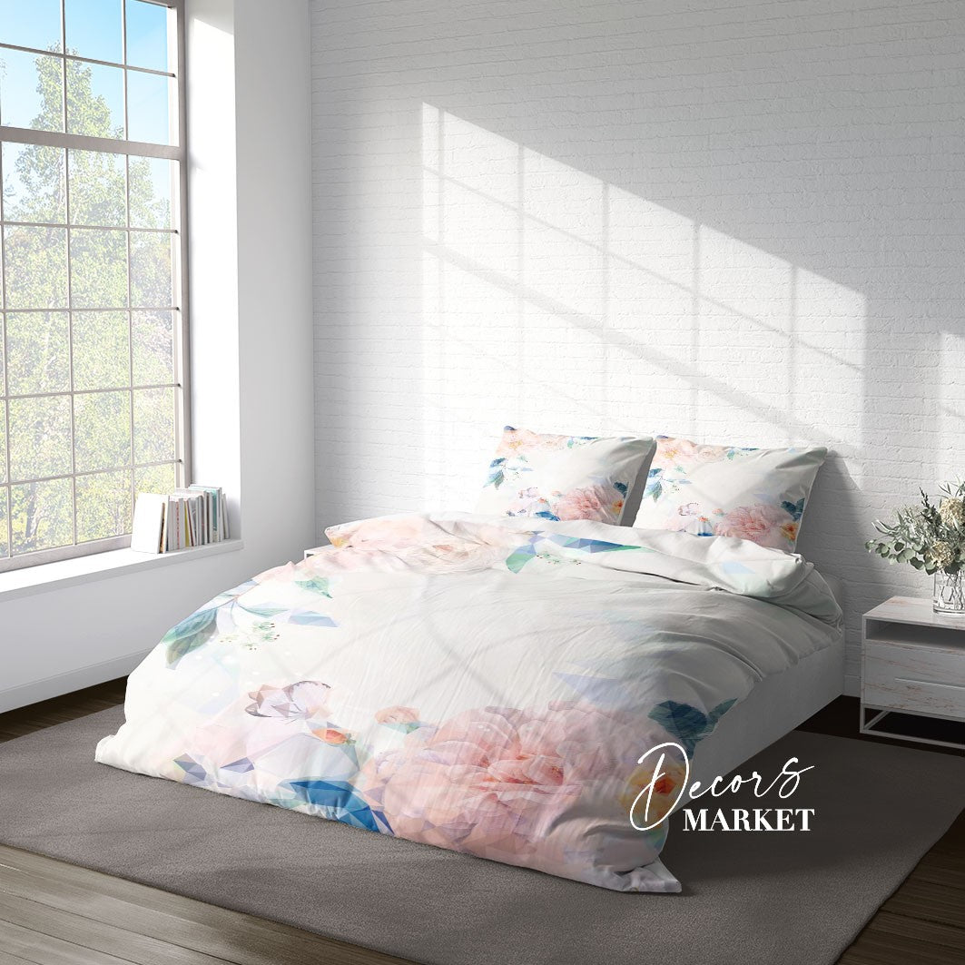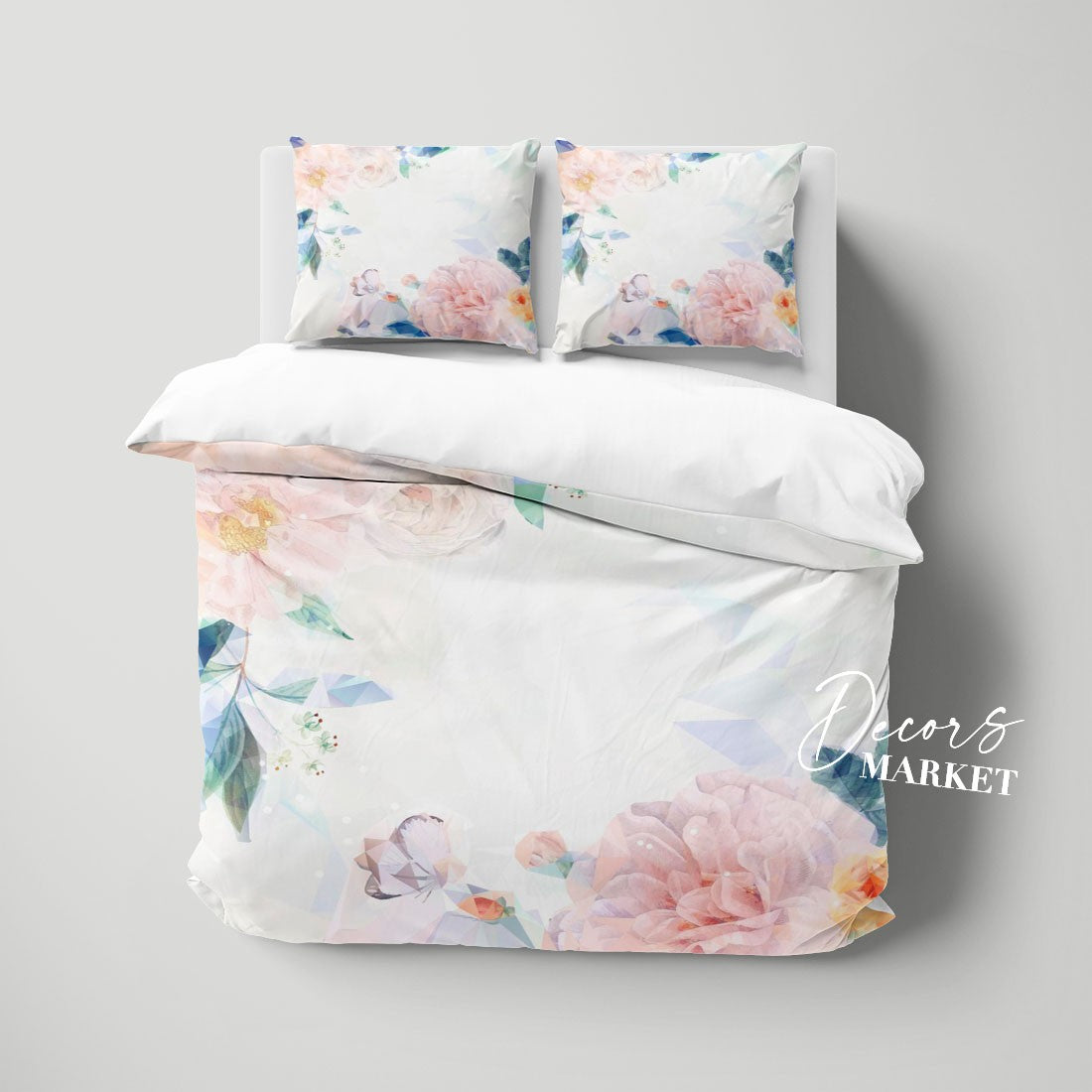 Watercolor Rose Duvet Cover Set w Pillowcases, Creamy Floral Patterns 3D Quilt Cover, 3pc Single Double Queen King Size Doona Cover