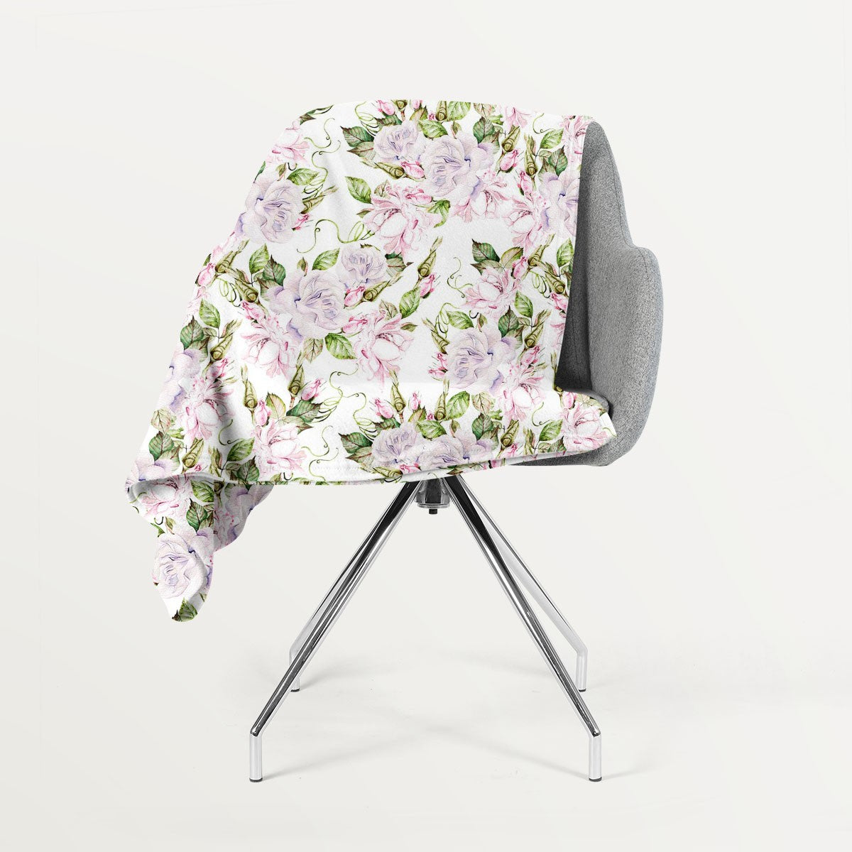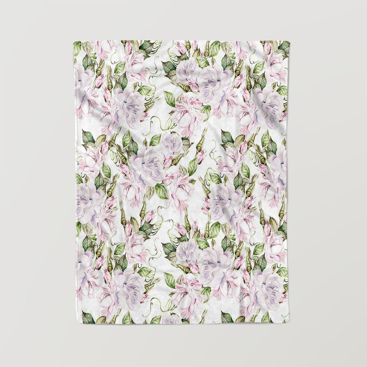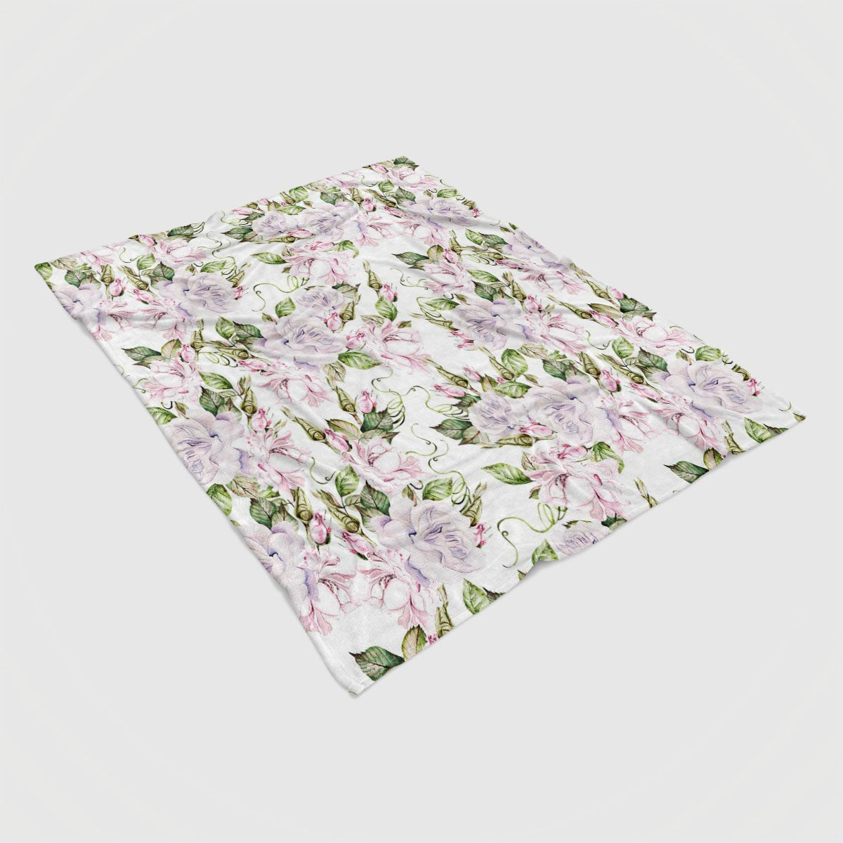 Watercolor Rose Leaf Floral Patterns Pink Personalized Throw Blanket Custom Fleece Sherpa Throw