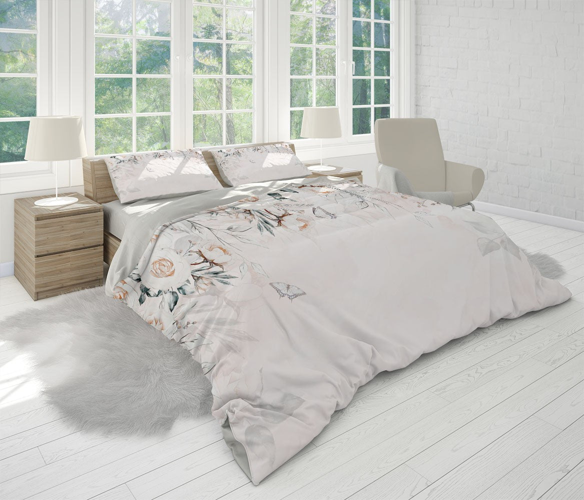 Watercolor Roses Floral Flowers Bright 3D Duvet Cover Set W Pillow Cover, Single Double Queen King Size, Printed Cotton Quilt Doona Cover