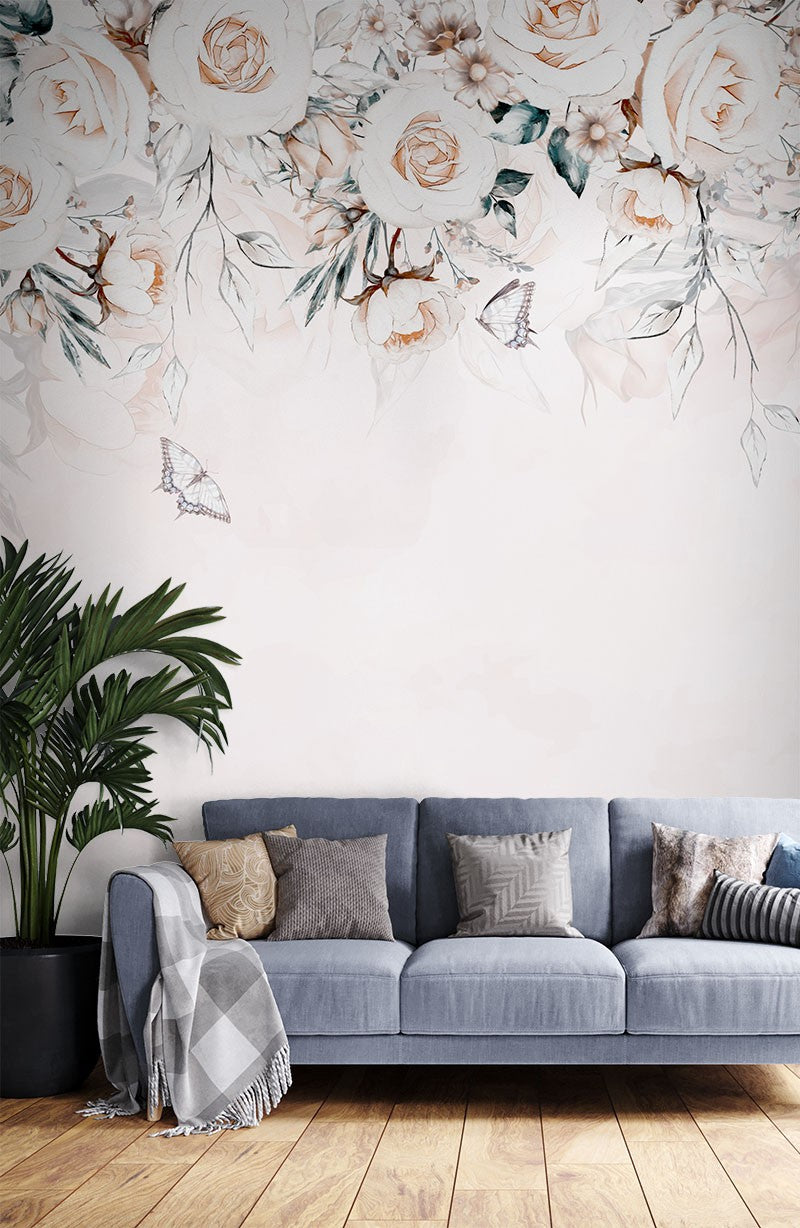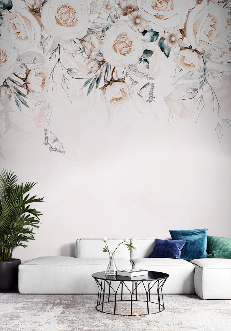 Watercolor Roses Floral Flowers Bright Wallpaper Mural