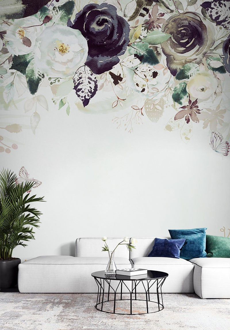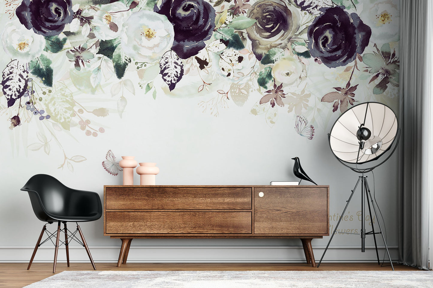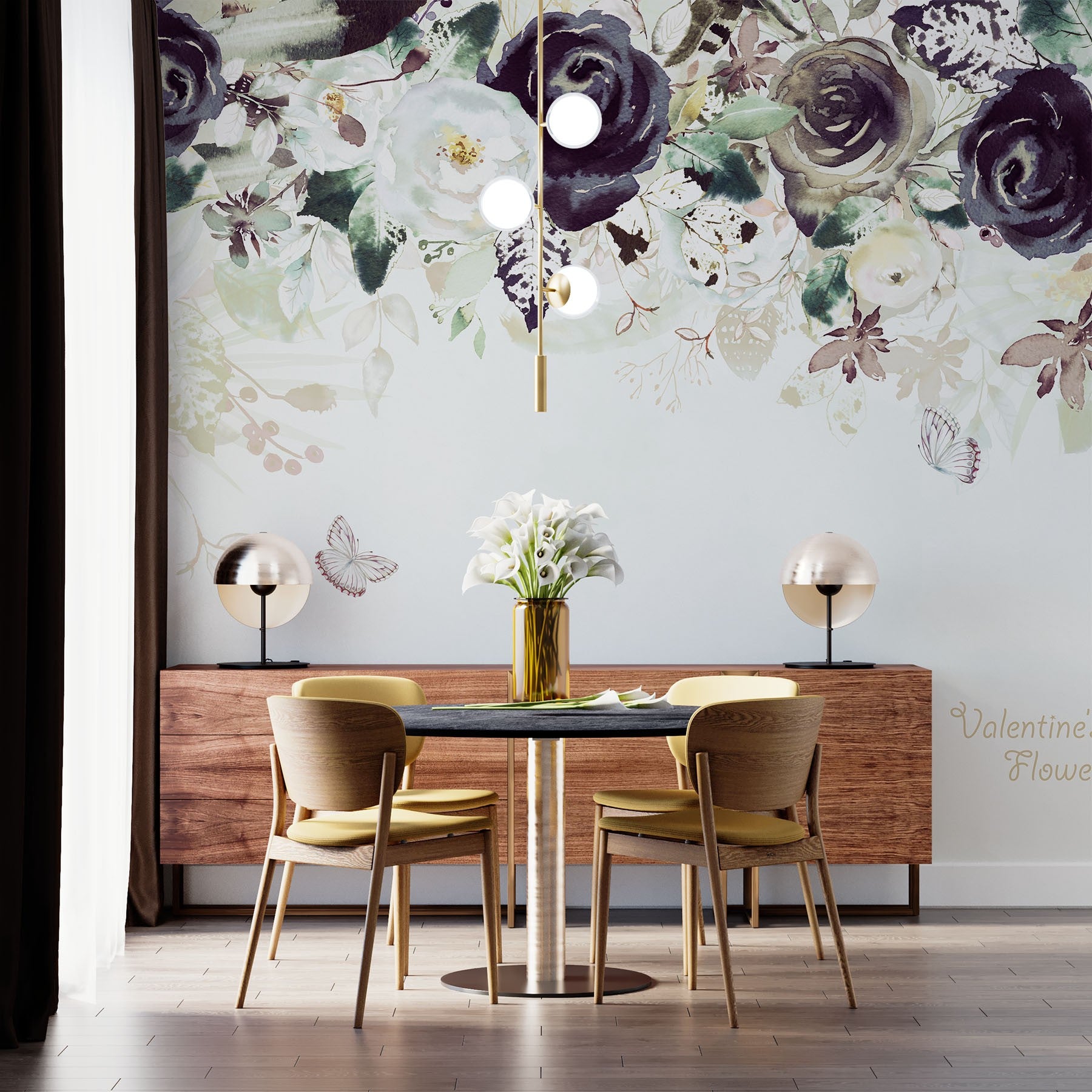 Watercolor Roses Floral Flowers Bright Wallpaper Mural