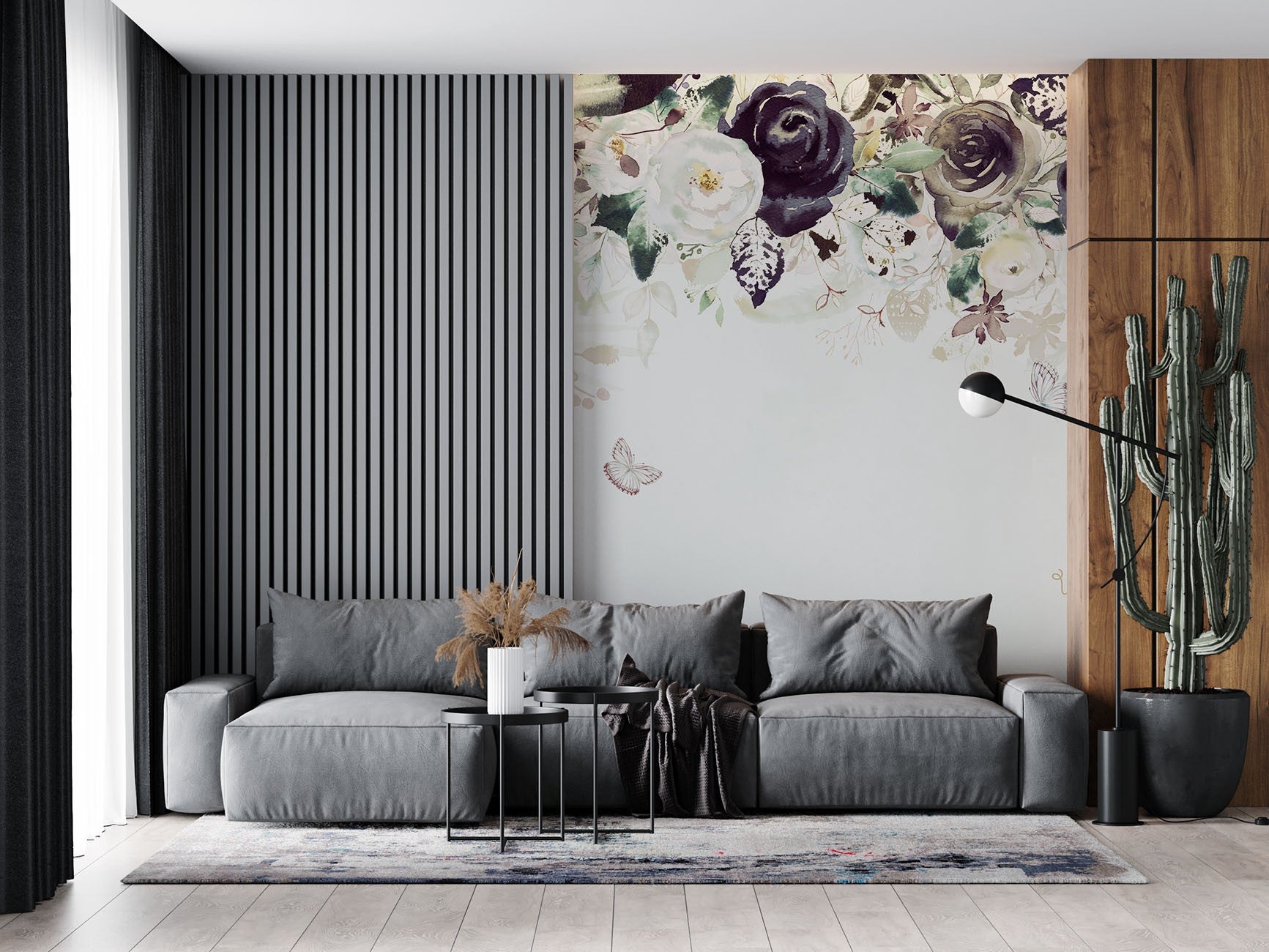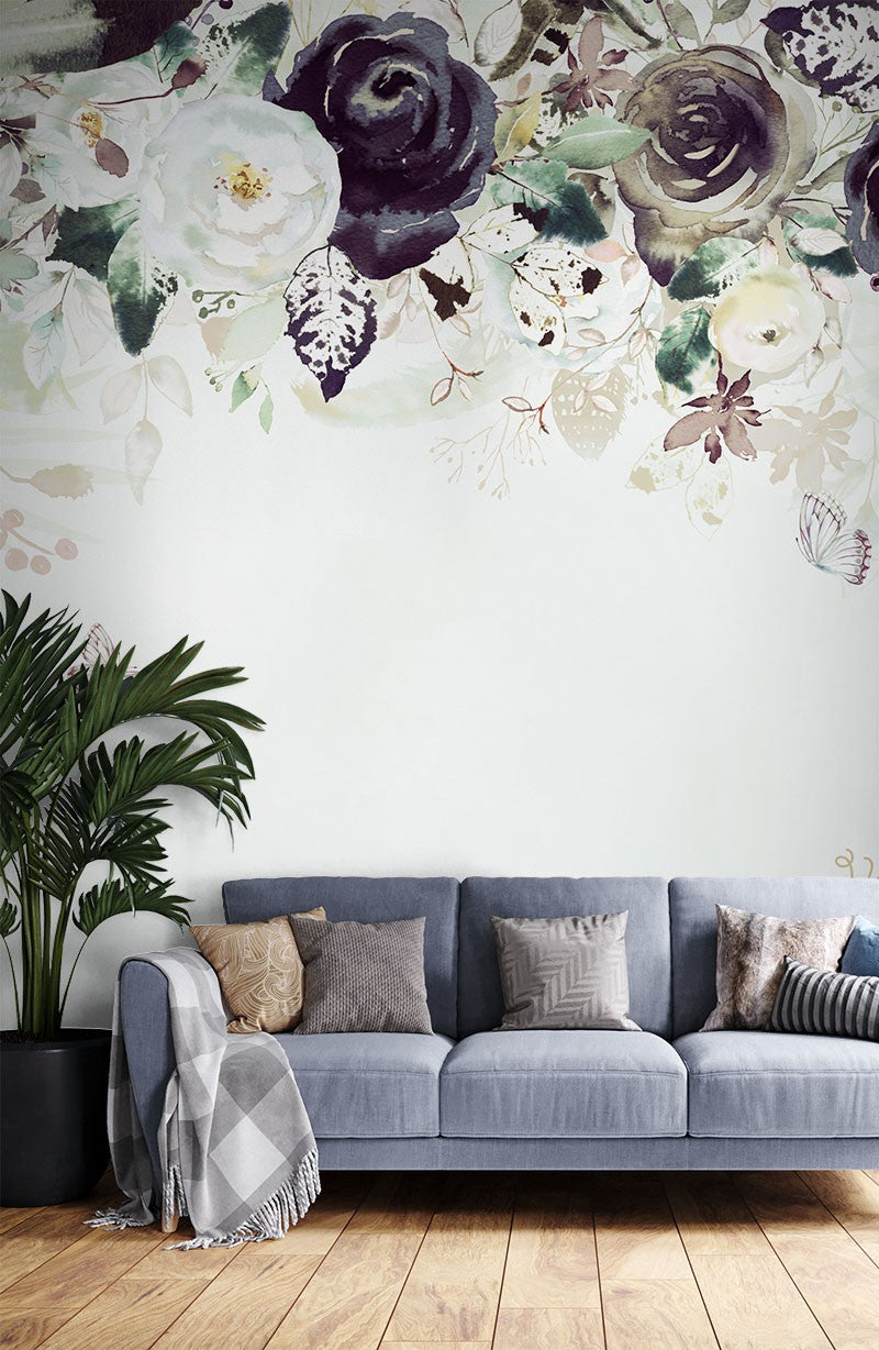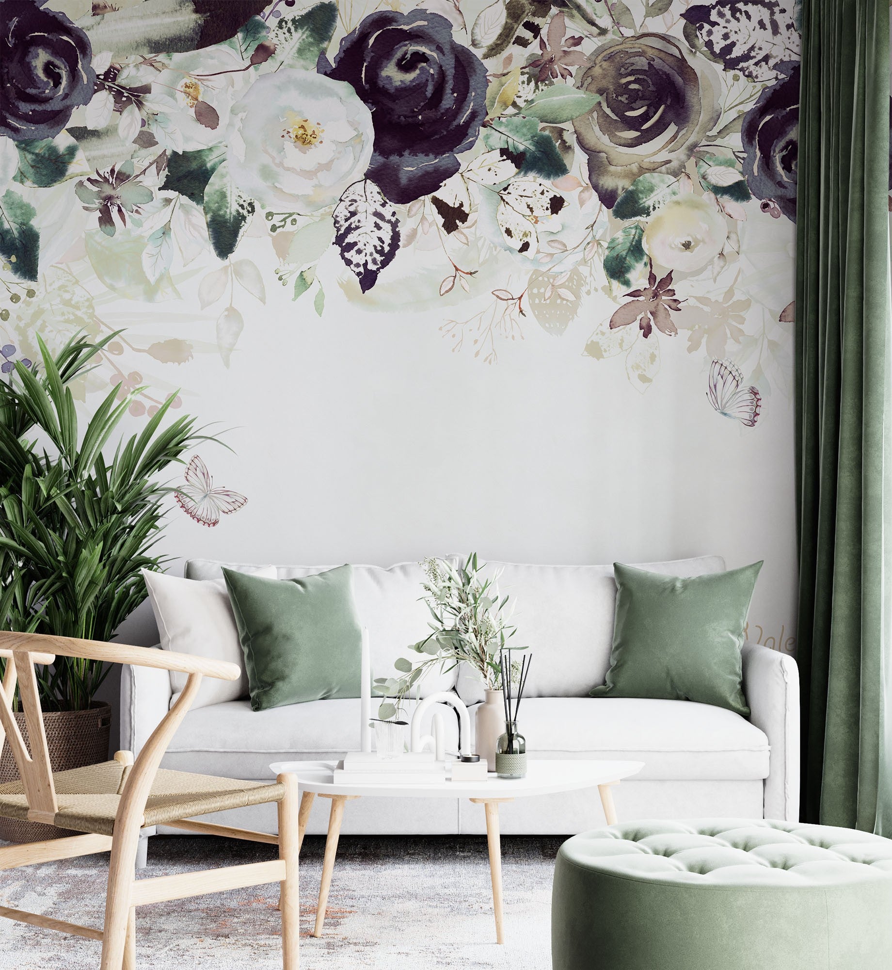 Watercolor Roses Floral Flowers Bright Wallpaper Mural