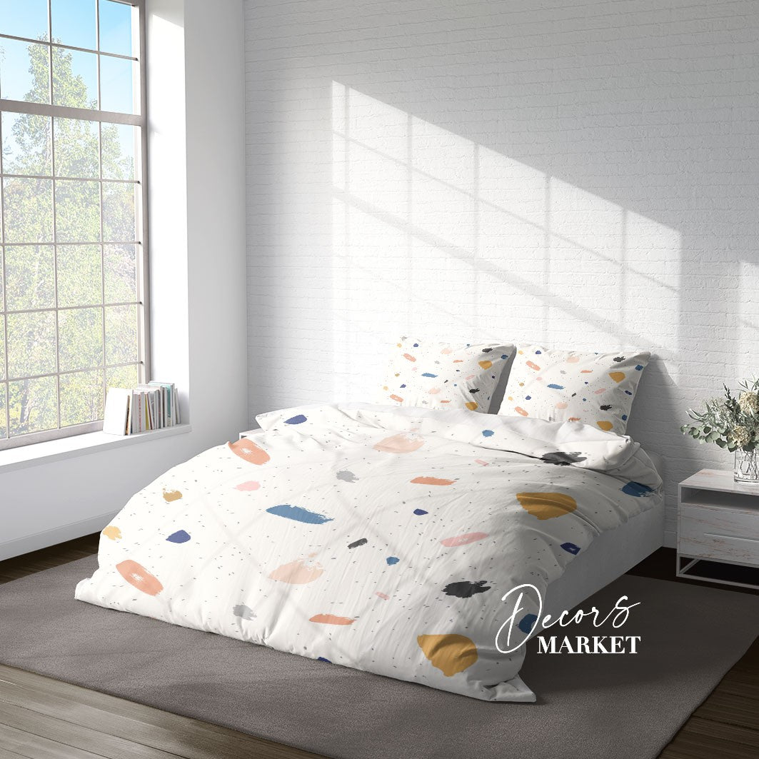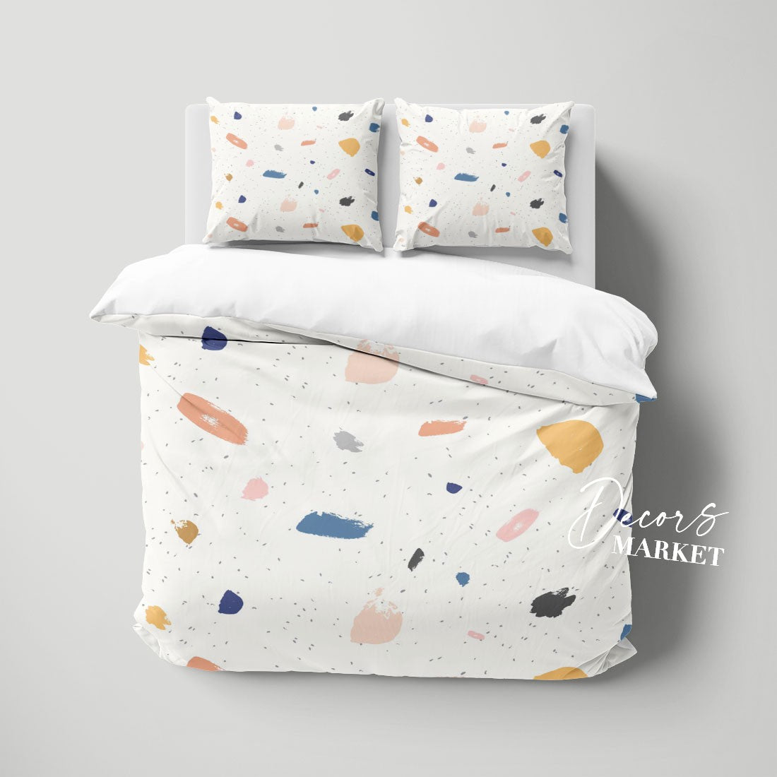 Watercolor Scandinavian Terrazzo Duvet Cover Set w Pillowcases, Creamy Kids 3D Quilt Cover, 3pc Single Double Queen King Size Doona Cover