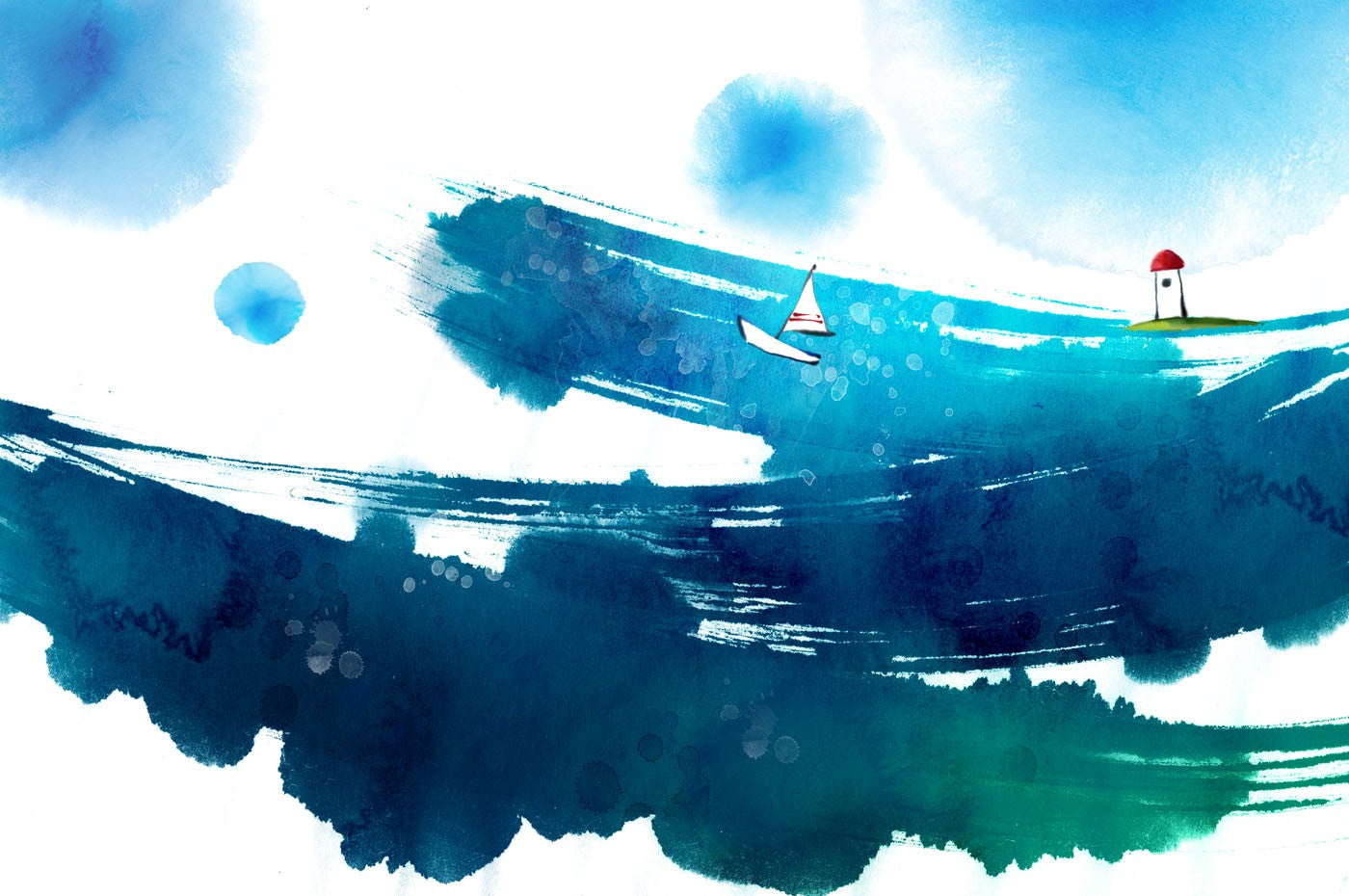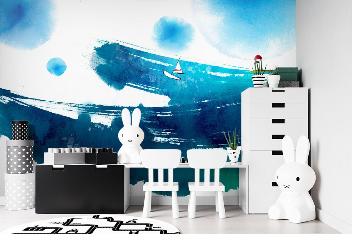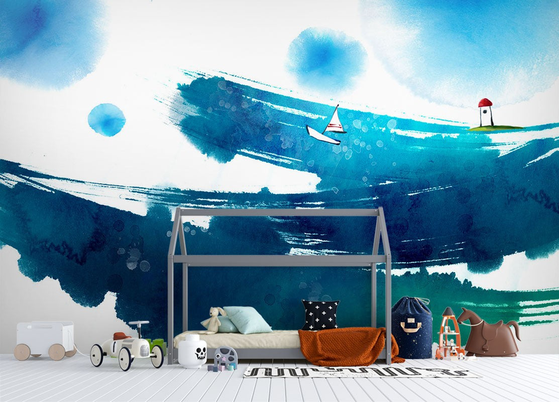 Watercolor Sea Kids Patterns Blue Wallpaper Mural,Self-Adhesive Peel And Stick 3D Wall Decal,Australian Company Wall Decor