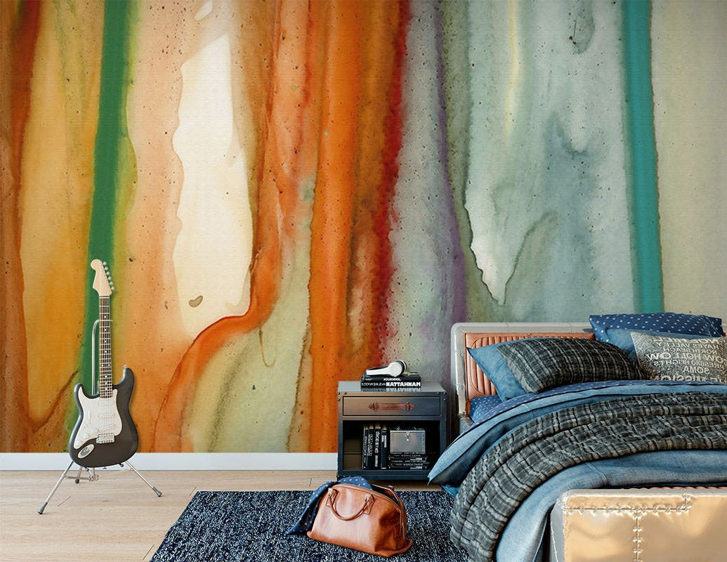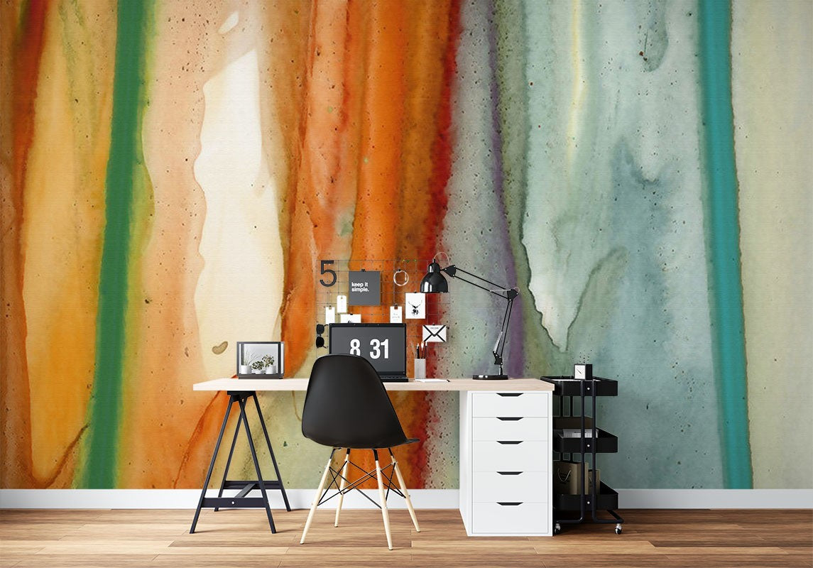 Watercolor Stripes Art Abstract Multicolour Wallpaper Mural,Self-Adhesive Peel And Stick 3D Wall Decor,Designer Removable Wall Decor