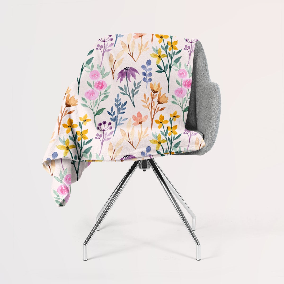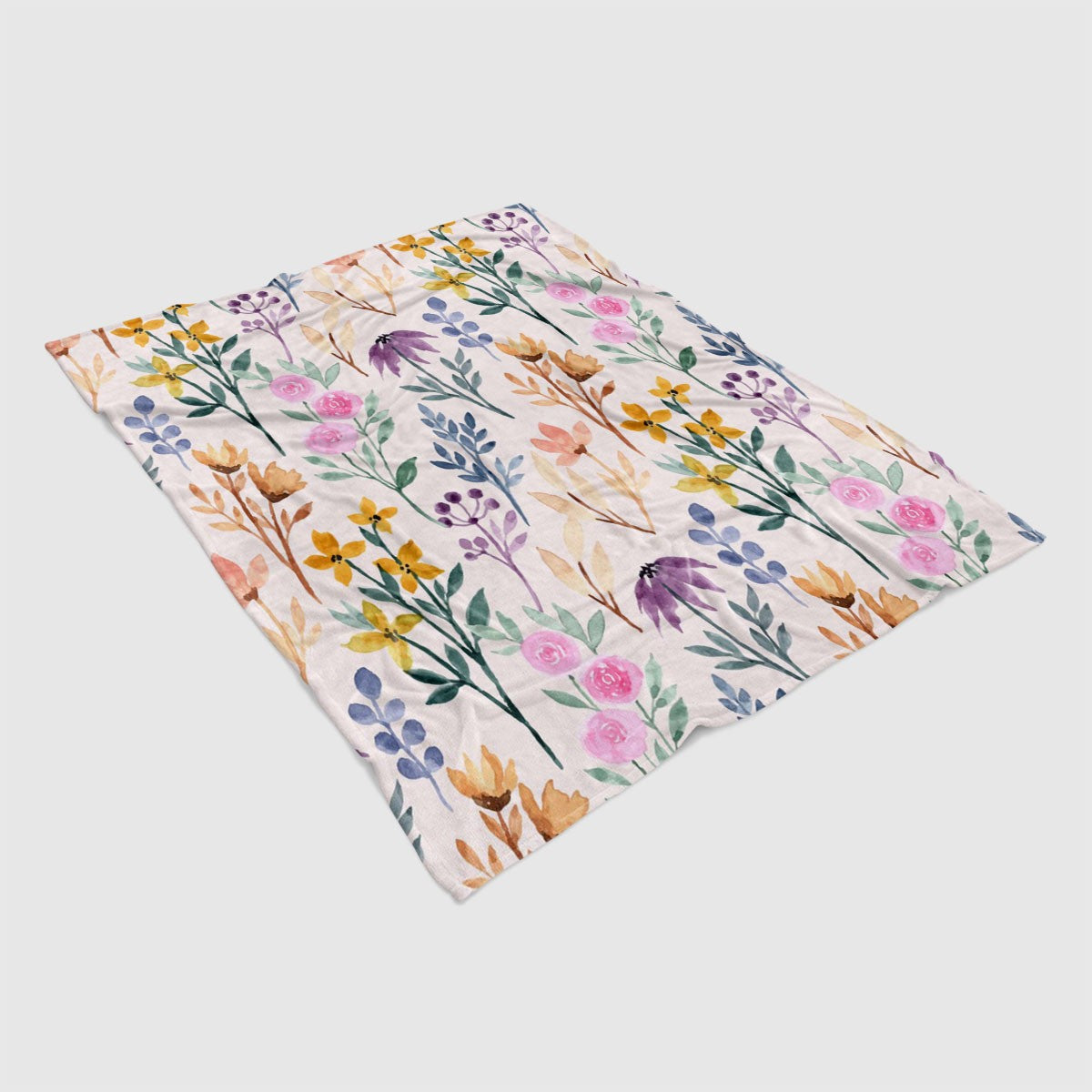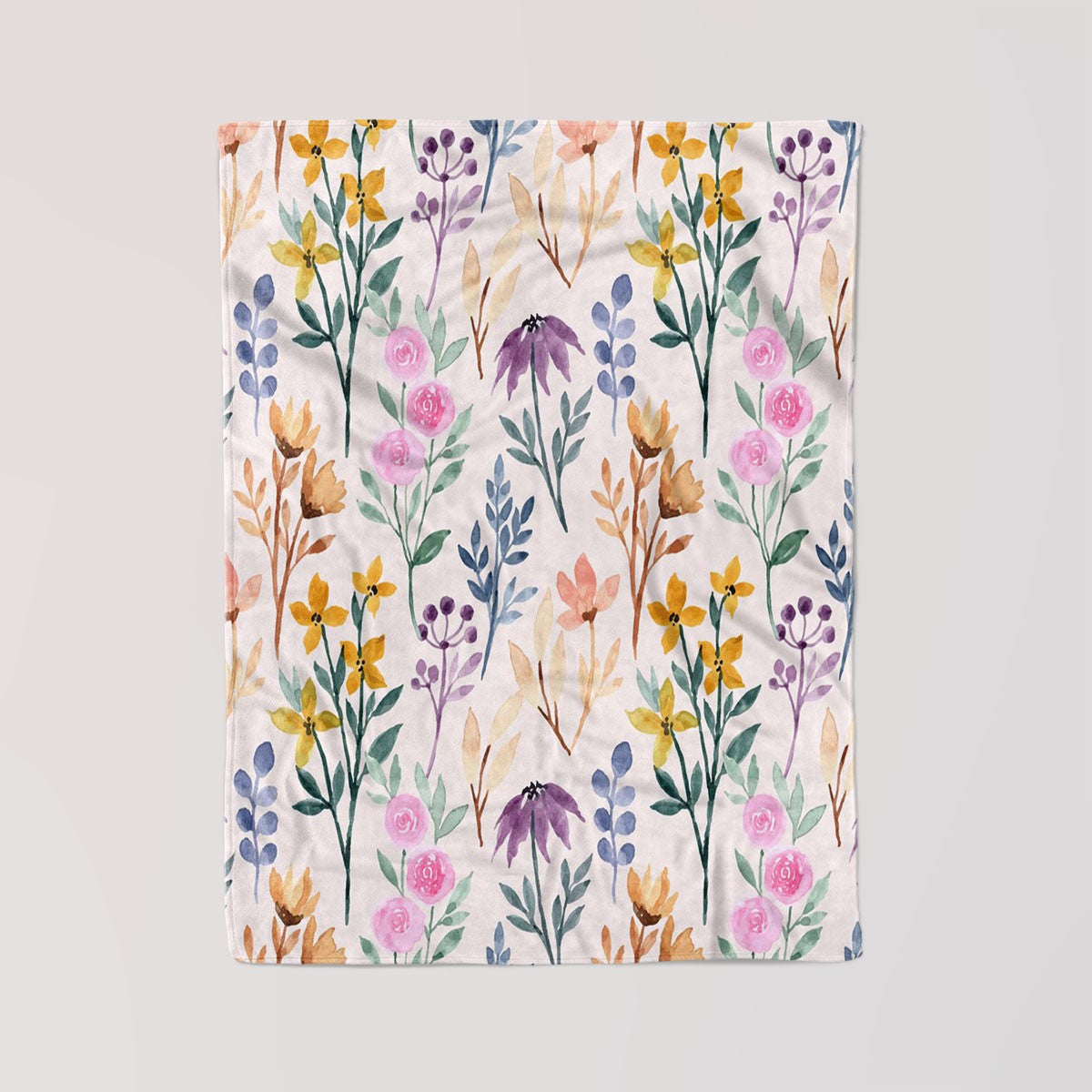 Watercolor Wild Flower Floral Patterns Pink Personalized Throw Blanket Custom Fleece Sherpa Throw