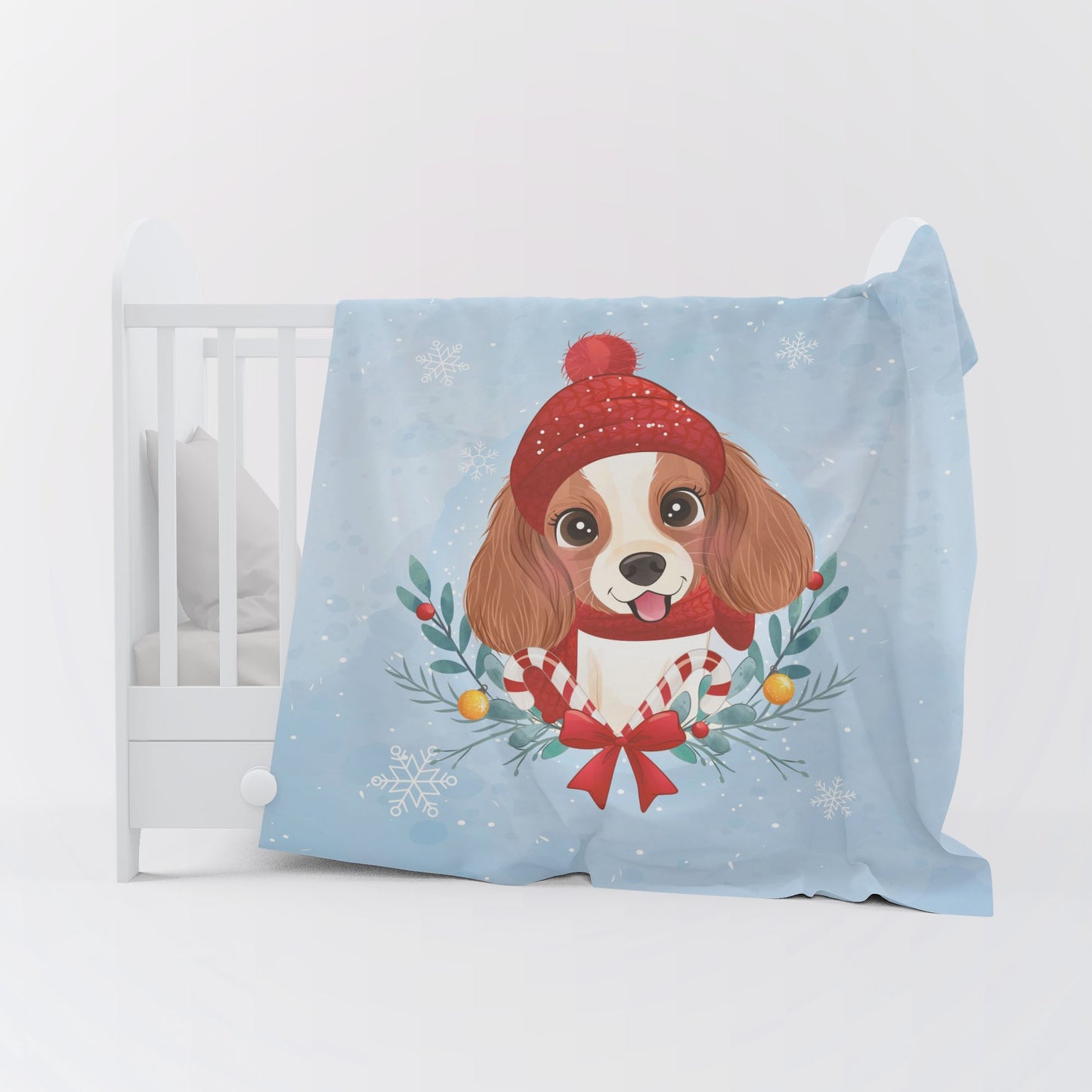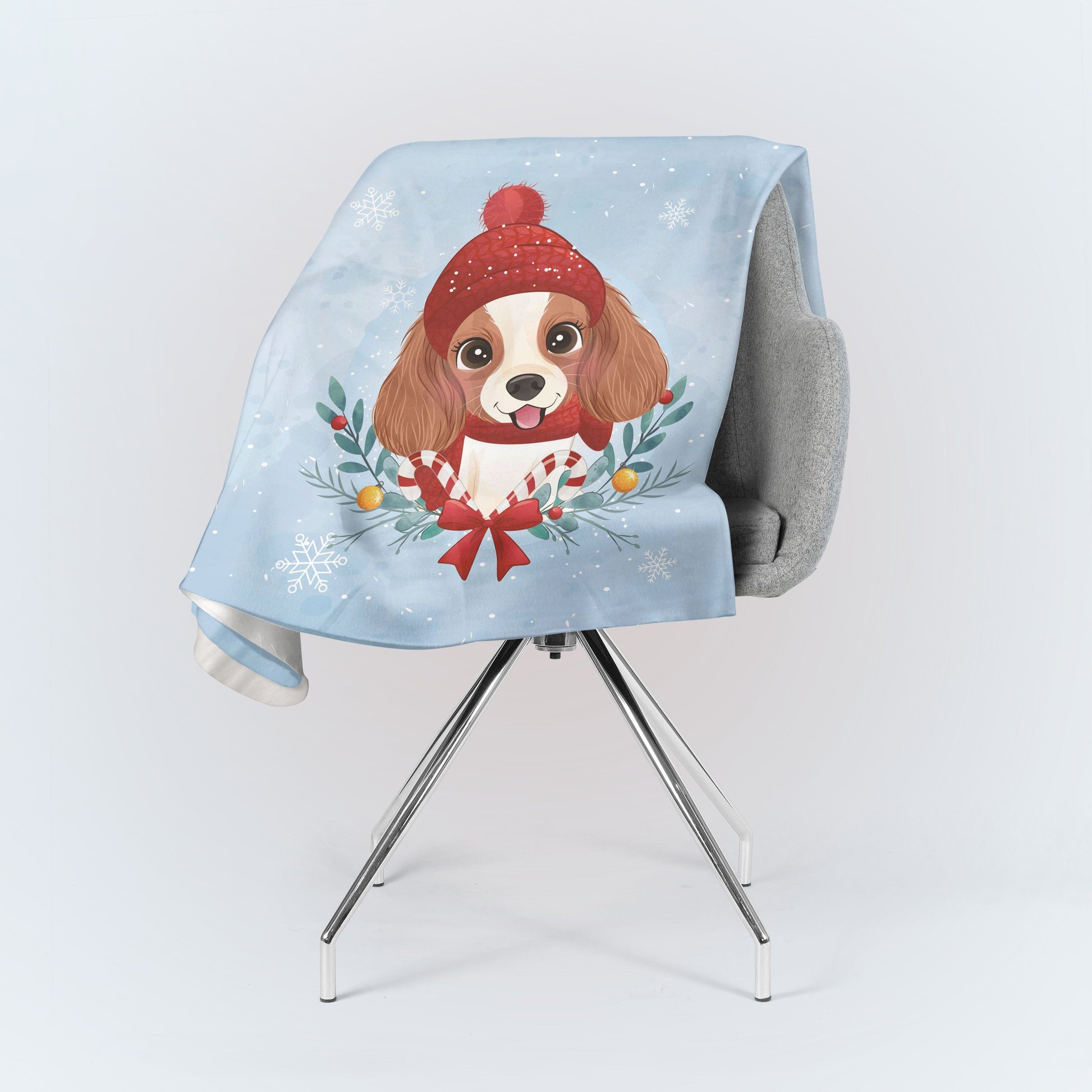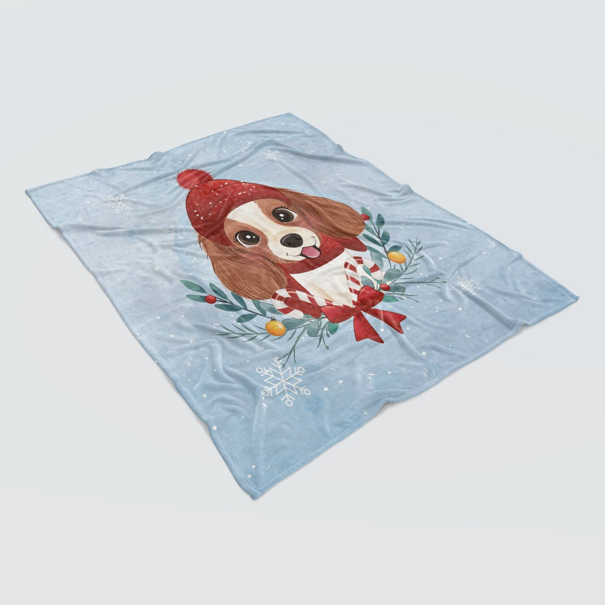 Watercolor Xmas Dog Kids Animal Blue Personalized Throw Blanket Custom Fleece Sherpa Throw