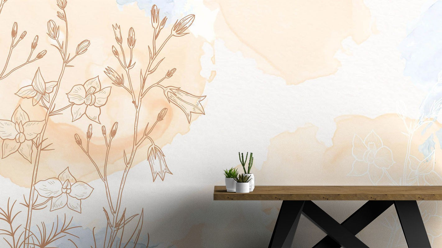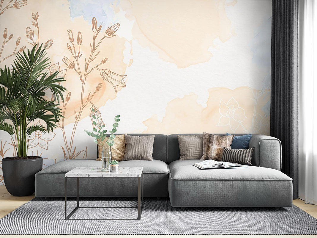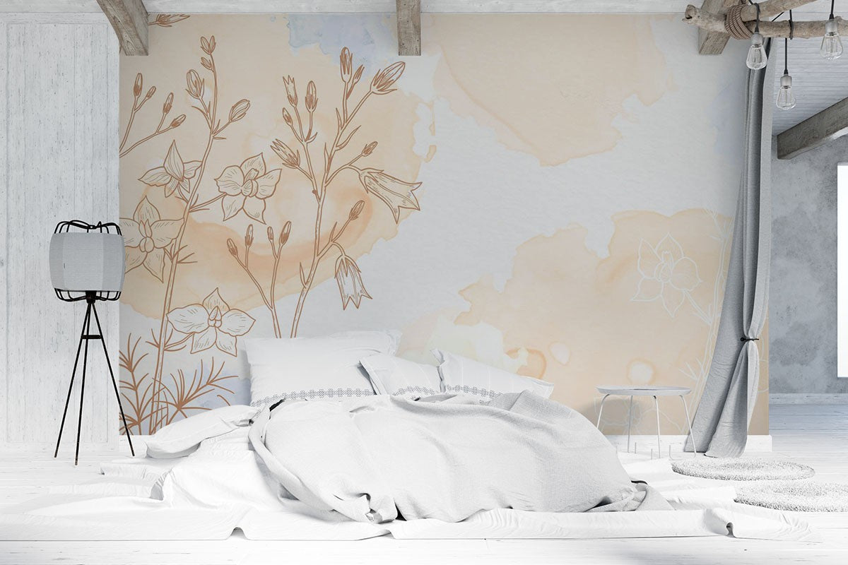 Watercolour Gradient Floral Flowers Creamy Wallpaper Mural