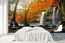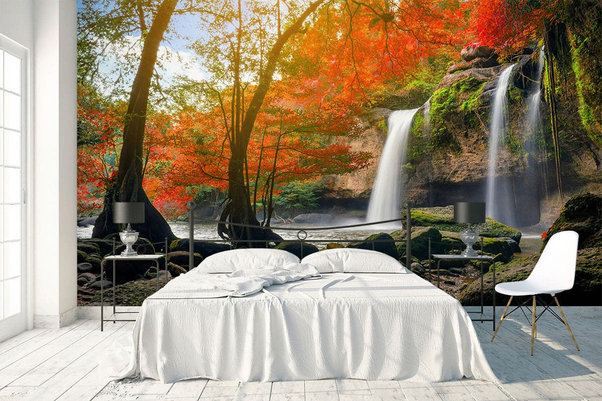Waterfall Autumn Nature Red Wallpaper Mural,Self-Adhesive Peel And Stick 3D Wall Decor,Removable Designer Wall Decor