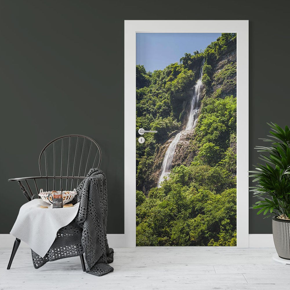 Waterfall Cliff Nature Waterfall Door Wrap, Customized Mural For Door, Door Mural Sticker, Peel And Stick Door Cover, Removable Door Decal