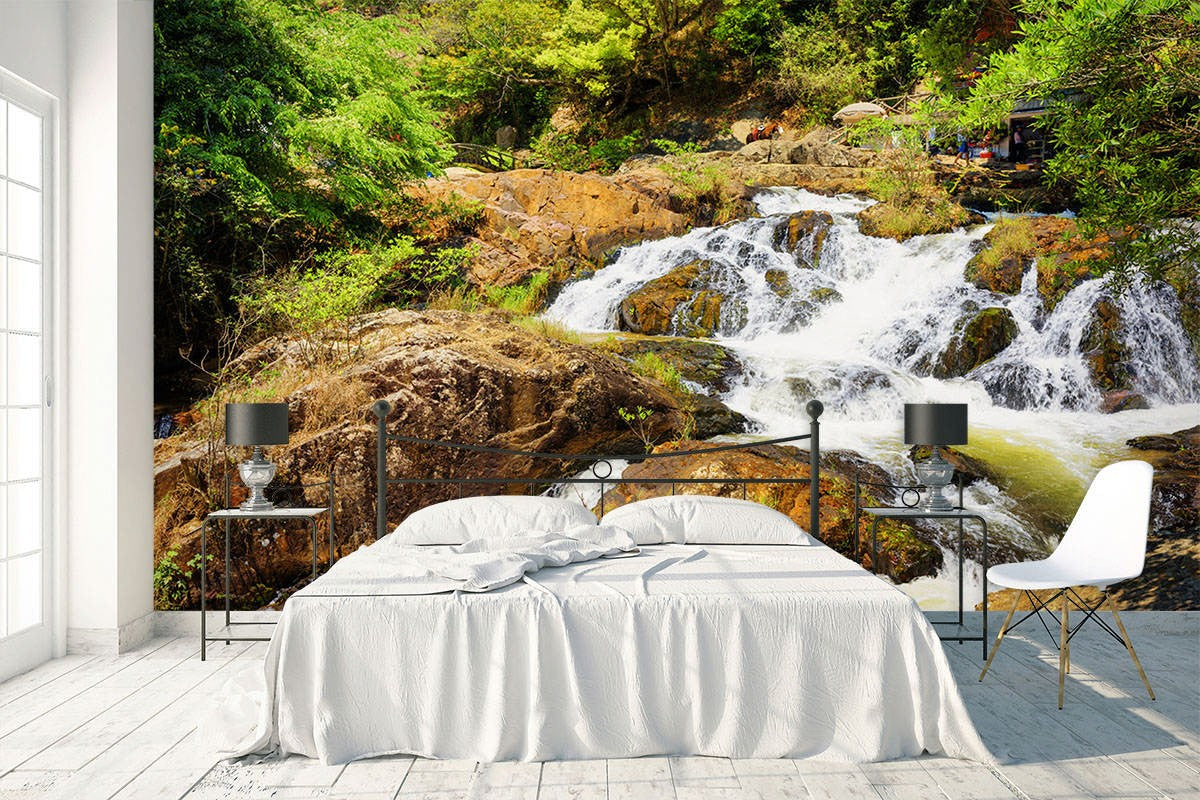 Waterfall Creek Nature Green Wallpaper Mural,Self-Adhesive Peel And Stick 3D Wall Paper,Bedroom Designer Wall Decor