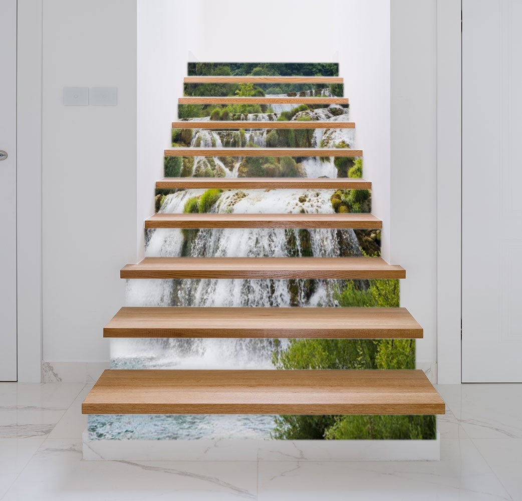 Waterfall Creek Nature Waterfall Green Stair Riser Decals, Waterproof Removable Staircase Decals, Vinyl Peel And Stick Stairs Decal Stickers
