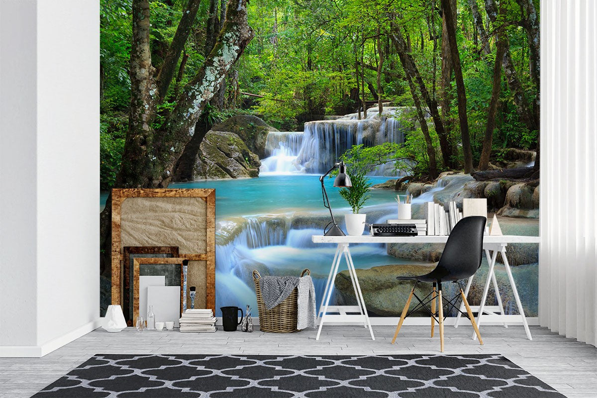 Waterfall Forest Nature Green Wallpaper Mural,Self-Adhesive Peel And Stick 3D Wall Decor,Removable Designer Wall Decor