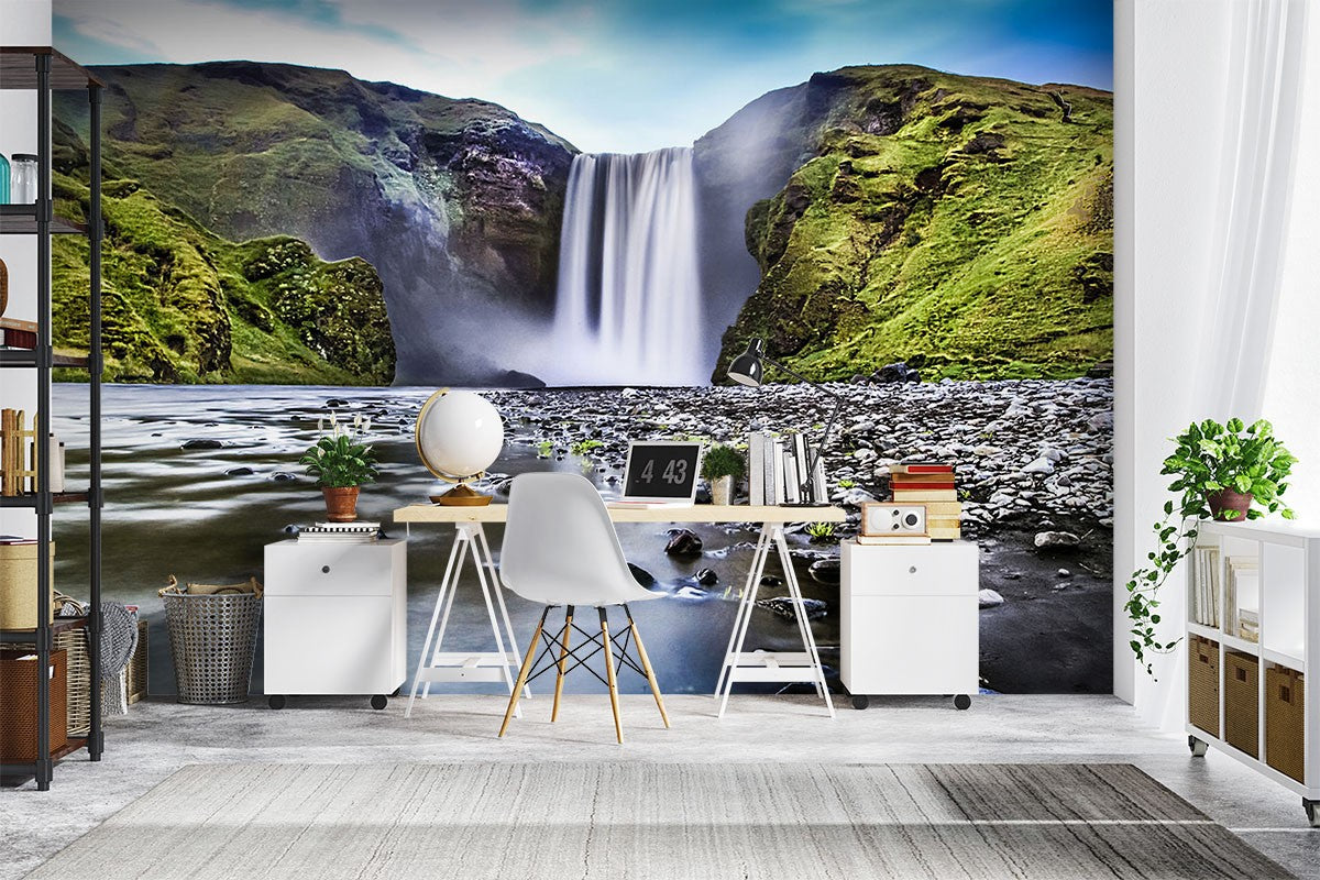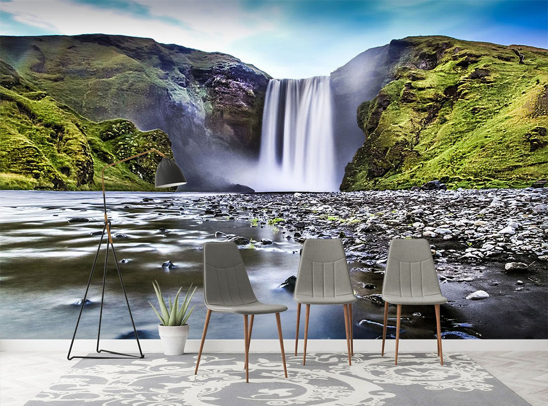 Waterfall Mountain Nature Green Wallpaper Mural,Self-Adhesive Peel And Stick 3D Wall Decal,Designer Australian Company Wall Decor
