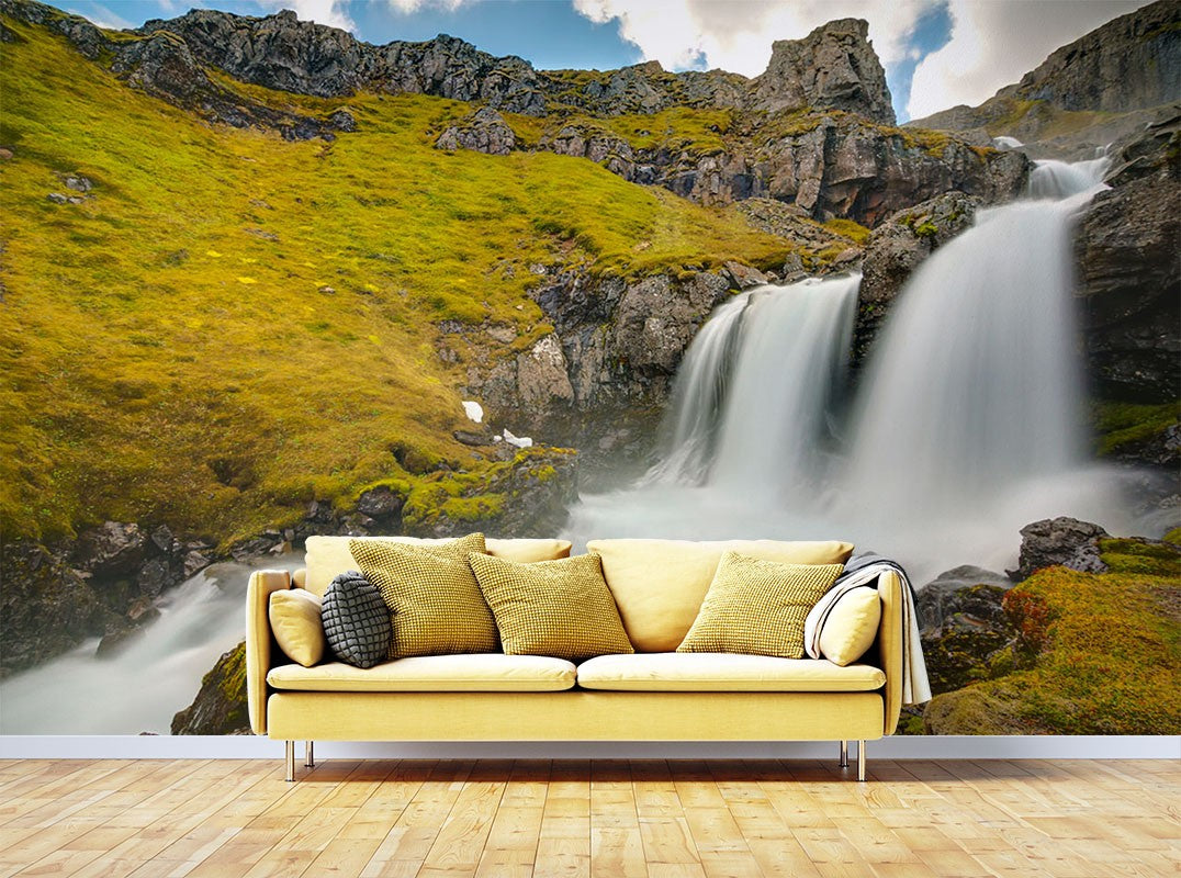 Waterfall Mountain Nature Green Wallpaper Mural,Self-Adhesive Peel And Stick 3D Wall Decor,Removable Designer Wall Decor