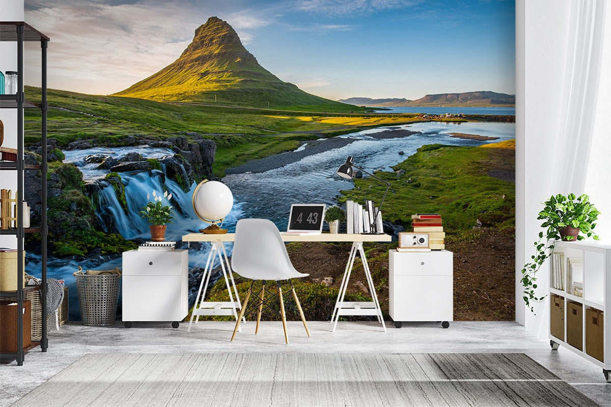 Waterfall Mountain Nature Lakes Green Wallpaper Mural,Self-Adhesive Peel And Stick 3D Wall Decal,Designer Bedroom Wall Decor
