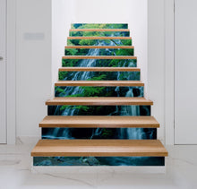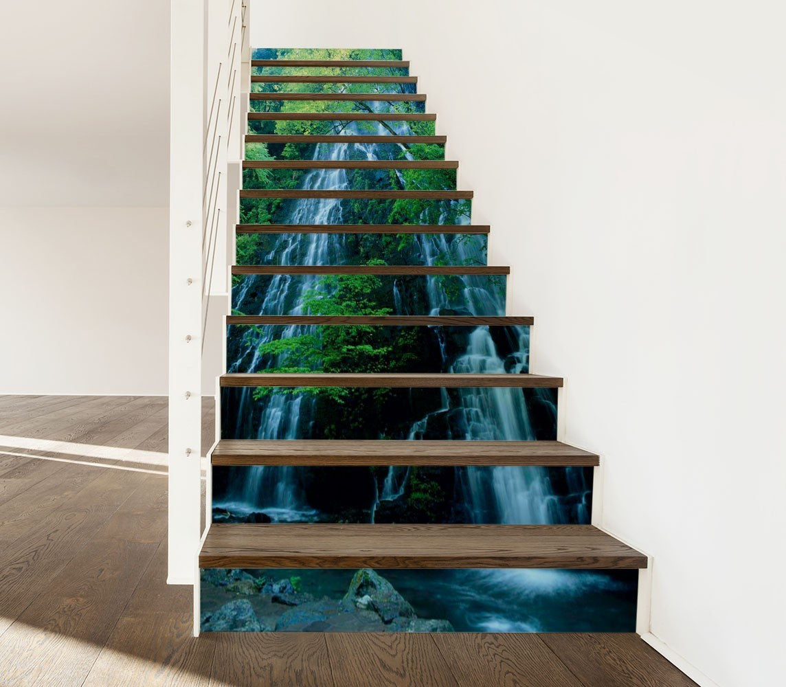 Waterfall Mountain Nature Green Stair Riser Decals, Waterproof Removable Staircase Decals, Vinyl Peel And Stick Stairs Decal Stickers