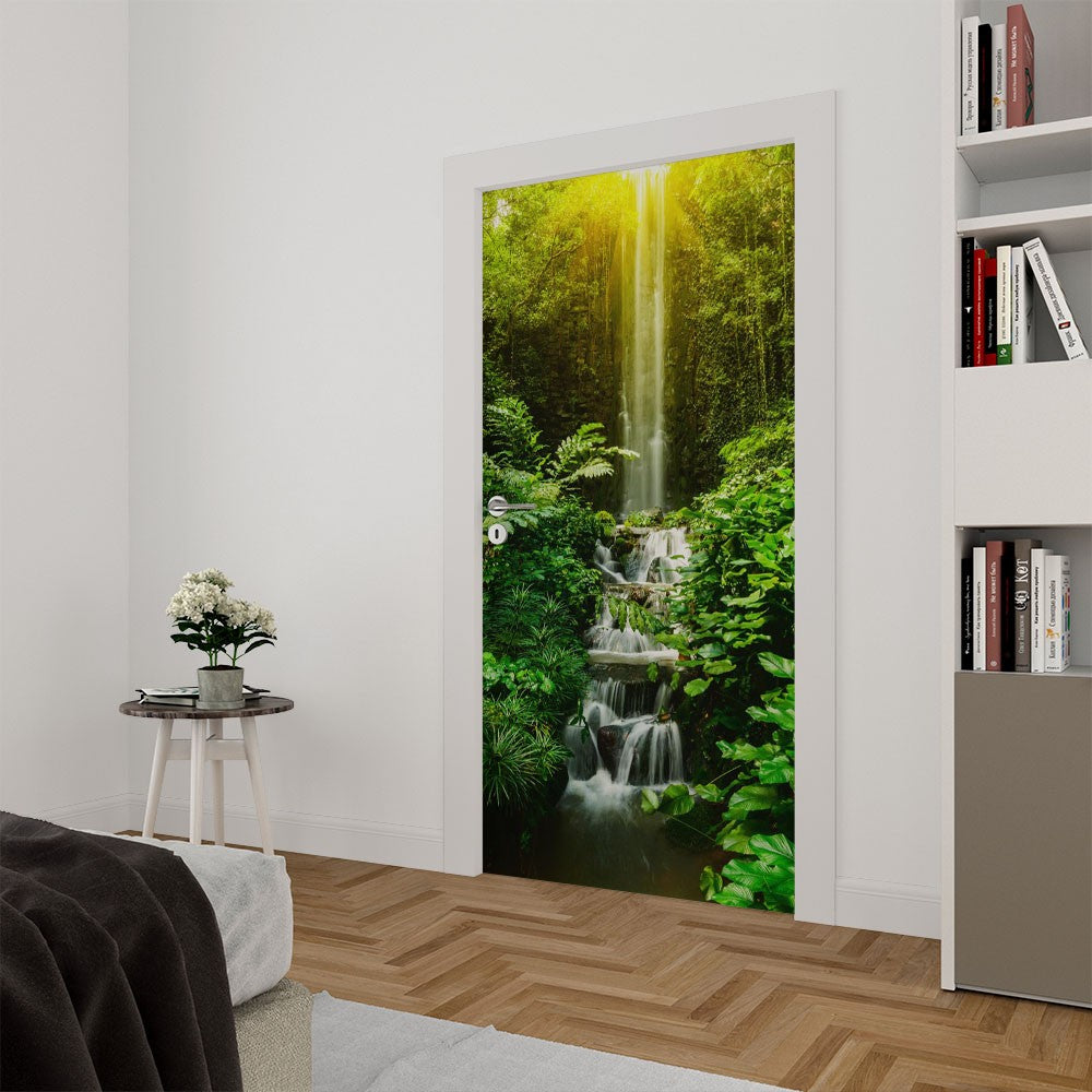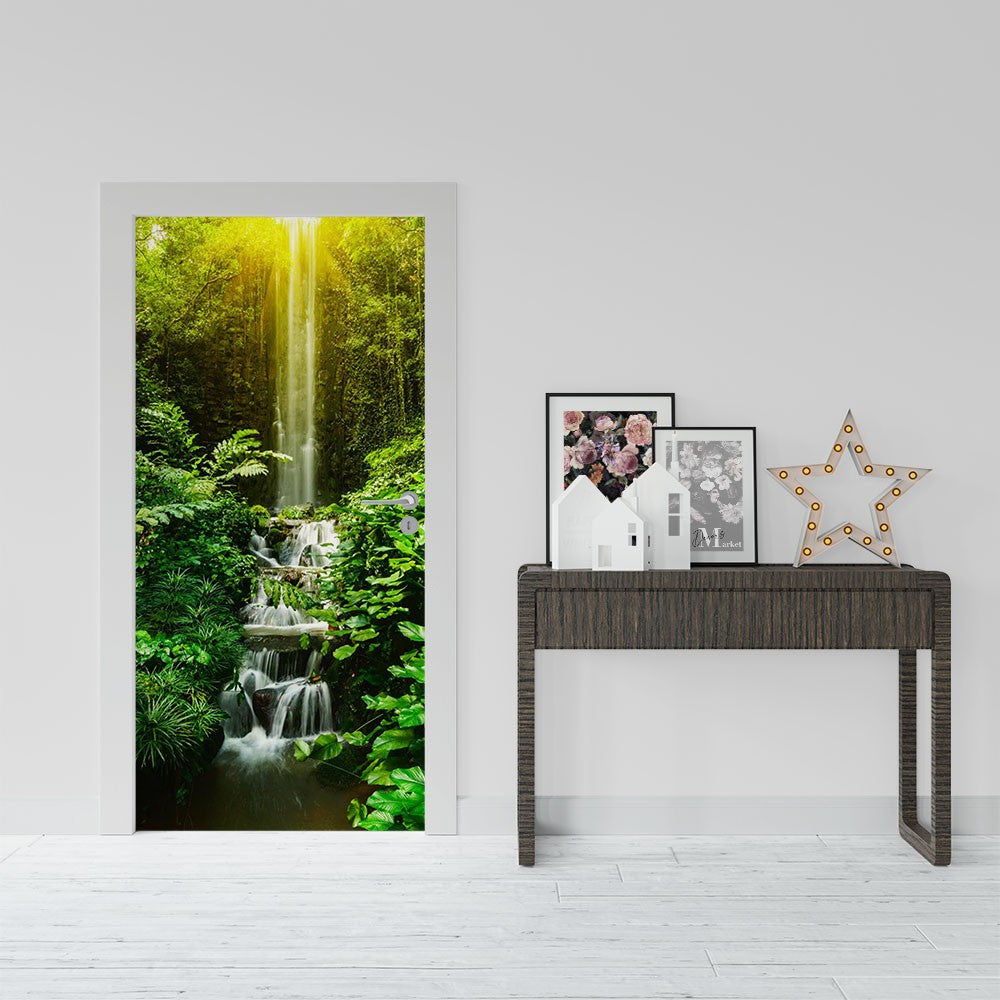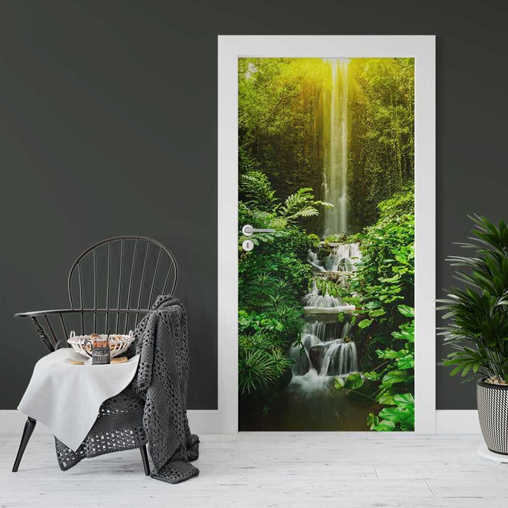 Waterfall Plants Nature Waterfall Door Wrap, Customized Mural For Door, Door Mural Sticker, Peel And Stick Door Cover, Removable Door Decal