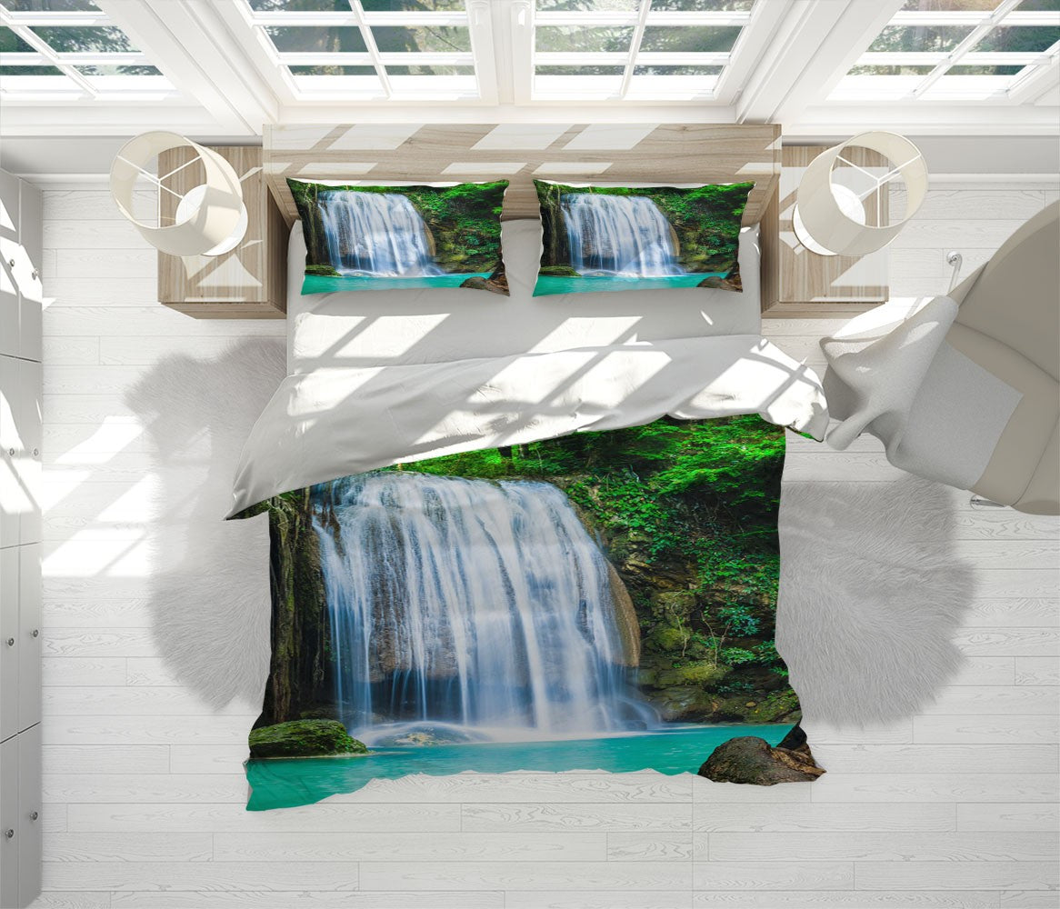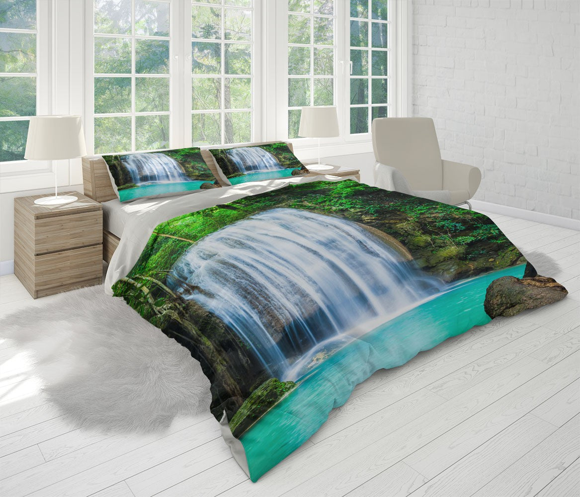 Waterfall Rainforest Nature Black 3D Duvet Cover Set W Pillow Cover, Single Double Queen King Size, Printed Cotton Quilt Doona Cover 3 Pcs