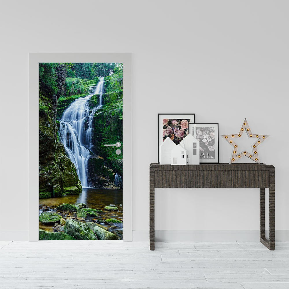 Waterfall Rock Nature Waterfall Door Wrap, Customized Mural For Door, Door Mural Sticker, Peel And Stick Door Cover, Removable Door Decal