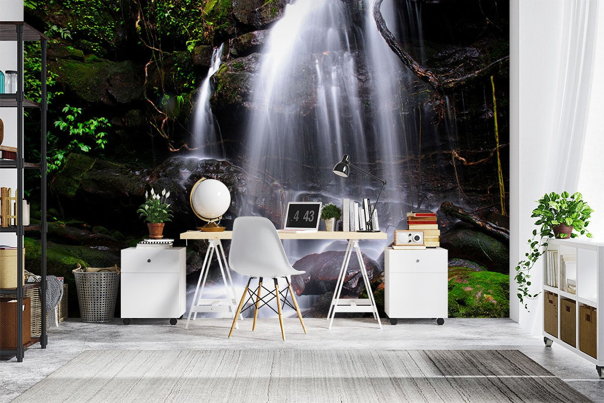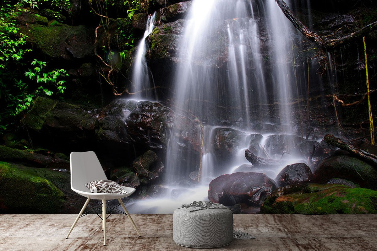 Waterfall Rocks Nature Green Wallpaper Mural,Self-Adhesive Peel And Stick 3D Wall Art,Bedroom Removable Wall Decor