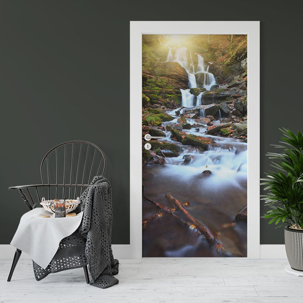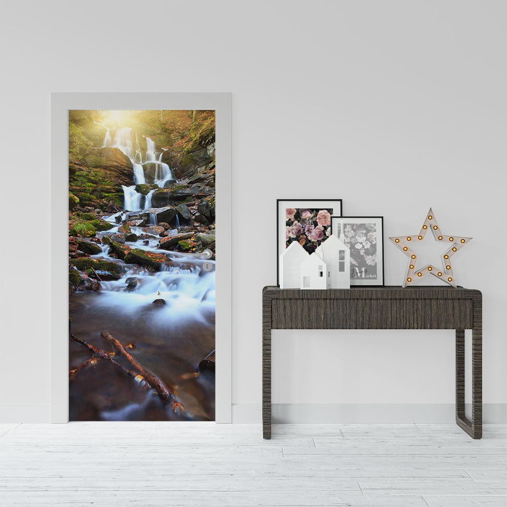 Waterfall Rocks Nature Waterfall Door Wrap, Customized Mural For Door, Door Mural Sticker, Peel And Stick Door Cover, Removable Door Decal