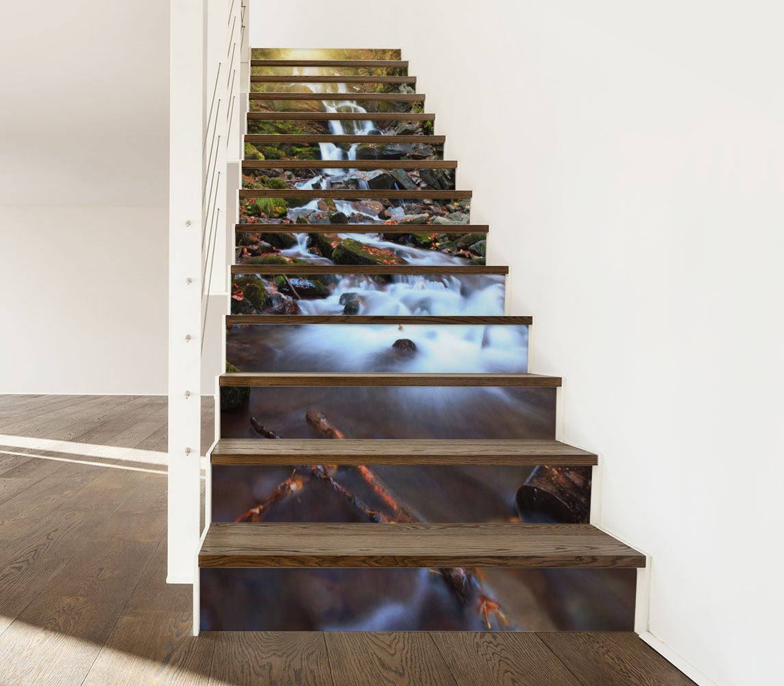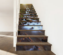 Waterfall Rocks Nature Waterfall Brown Stair Riser Decals, Waterproof Removable Staircase Decals, Vinyl Peel And Stick Stairs Decal Stickers