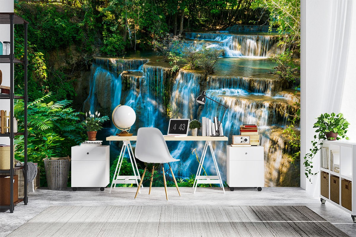 Waterfall Trees Nature Green Wallpaper Mural,Self-Adhesive Peel And Stick 3D Wall Decor,Australian Company Removable Wall Decor