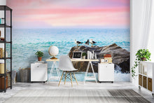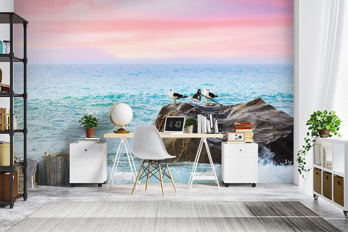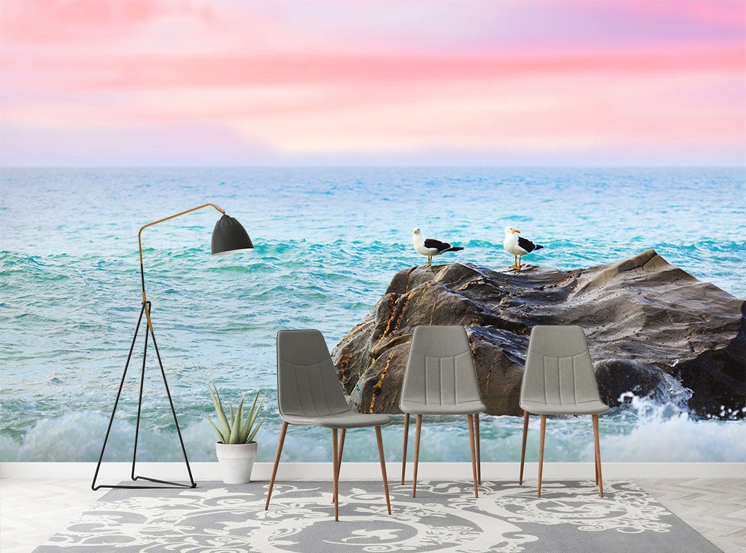 Wave Seagulls Beach Sunset Pink Wallpaper Mural,Self-Adhesive Peel And Stick 3D Wall Mural,Removable Australian Company Wall Decor