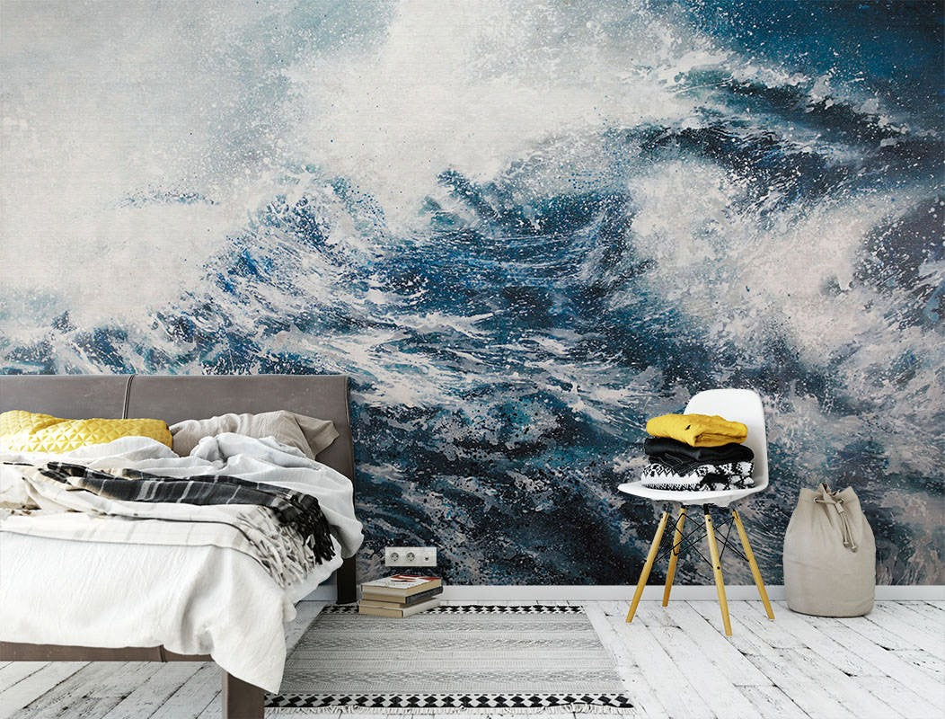 Wave Splash Beach Black&White Wallpaper Mural,Self-Adhesive Peel And Stick 3D Wall Art,Australian Company Designer Wall Decor