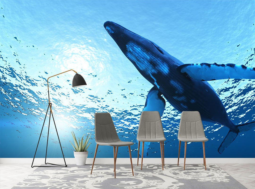 Whale Animals Sea Life Blue Wallpaper Mural,Self-Adhesive Peel And Stick 3D Wall Decal,Australian Company Removable Wall Decor