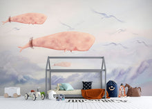 Whale Bird Kids Animal Pink Wallpaper Mural,Self-Adhesive Peel And Stick 3D Wall Decor,Designer Removable Wall Decor