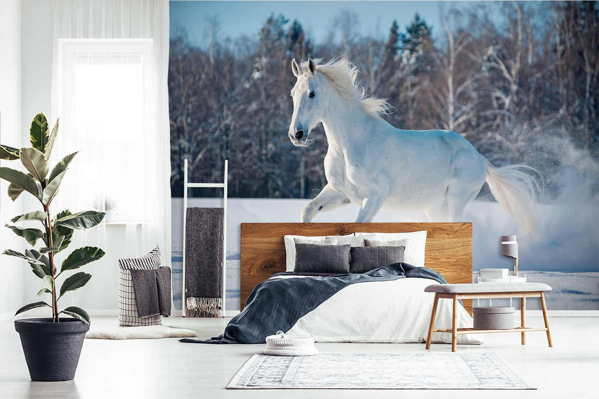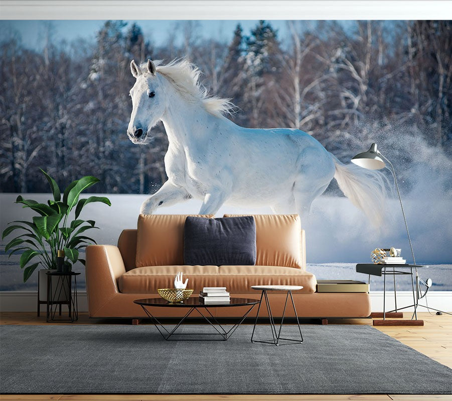 White Horse Animals Horses Blue Wallpaper Mural,Self-Adhesive Peel And Stick 3D Wall Mural,Removable Australian Company Wall Decor