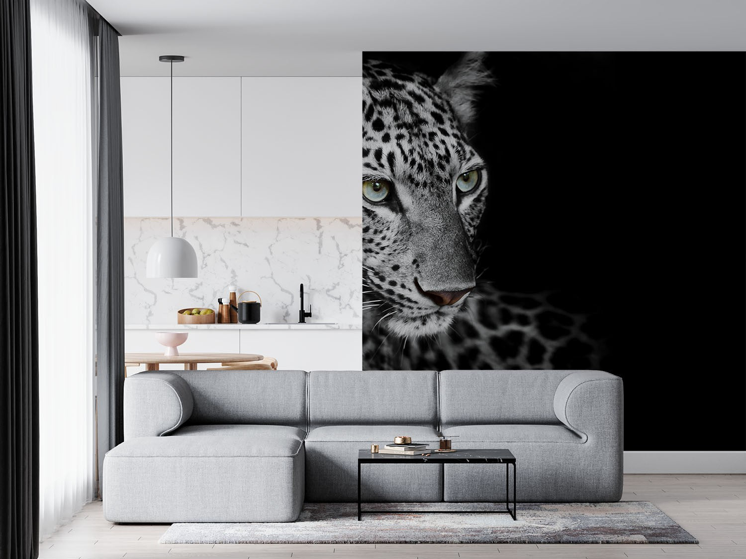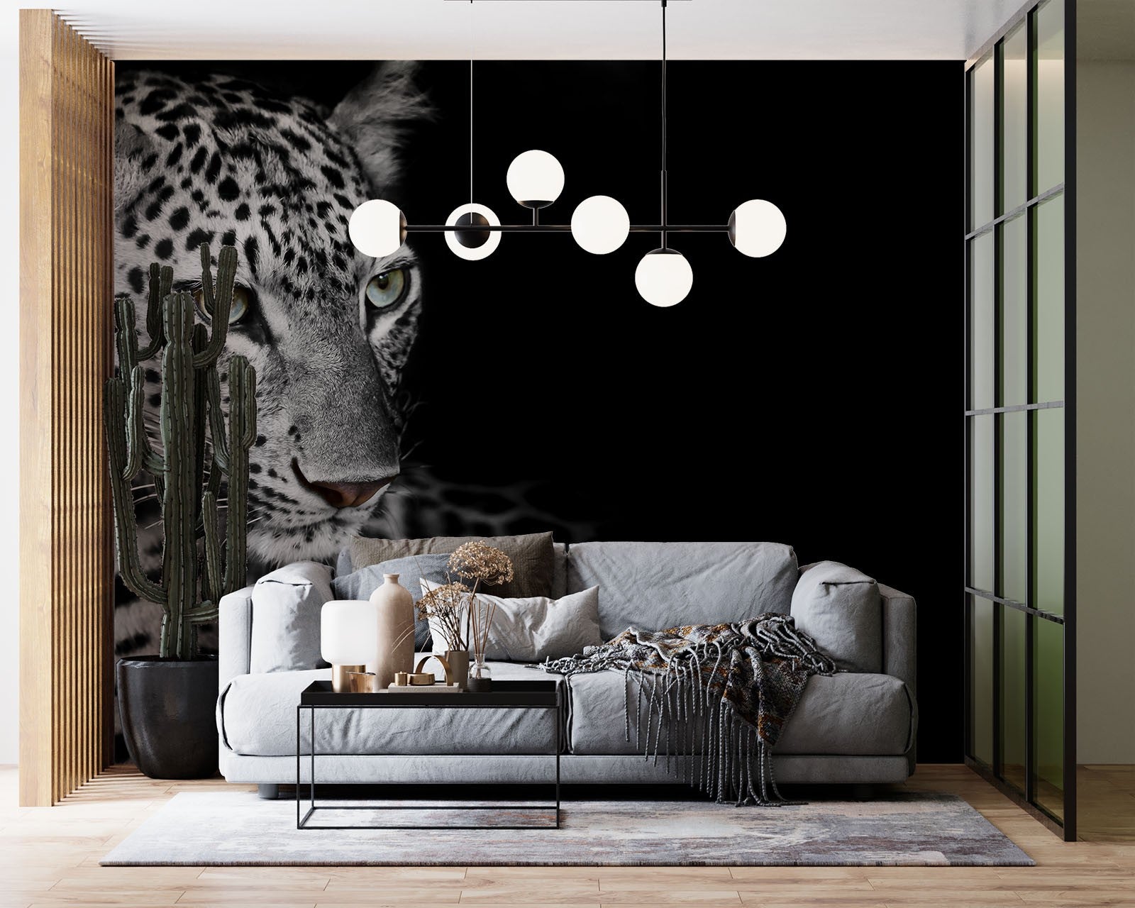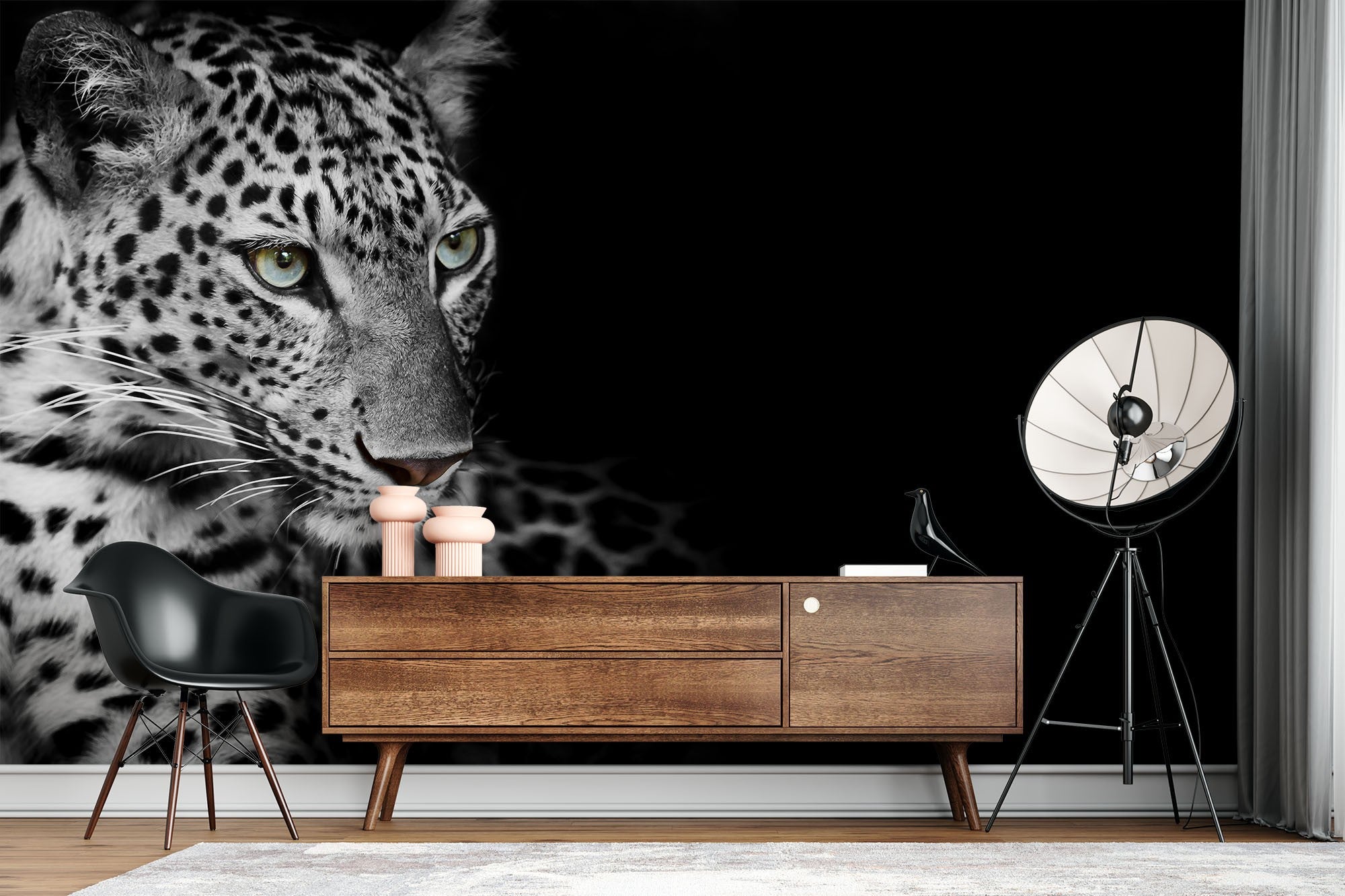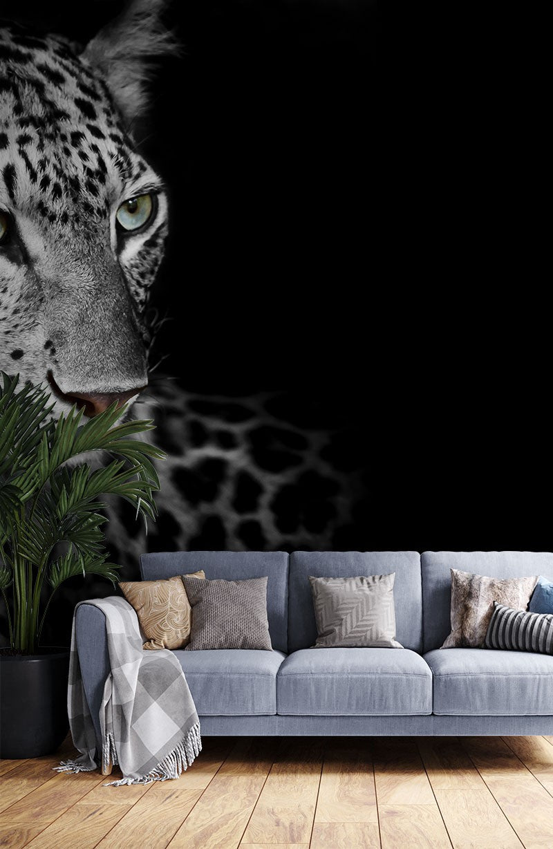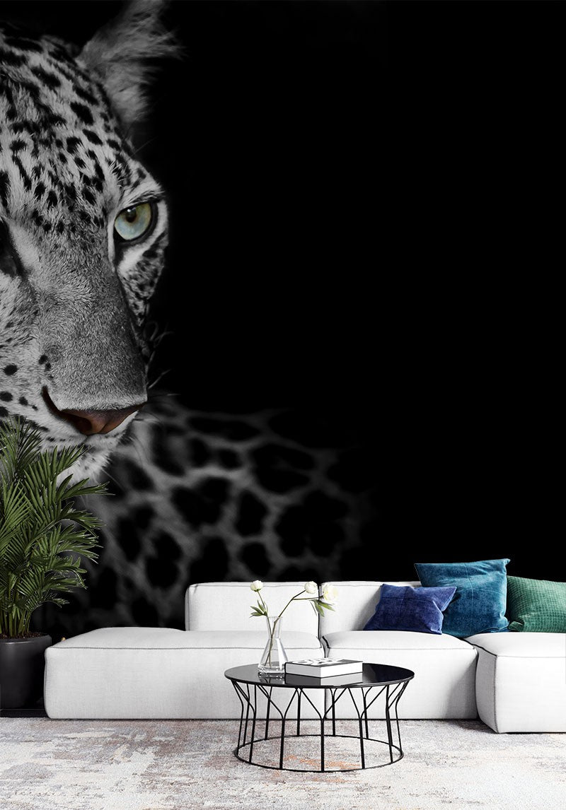 White Leopard Wild Animals Dark Wallpaper Mural