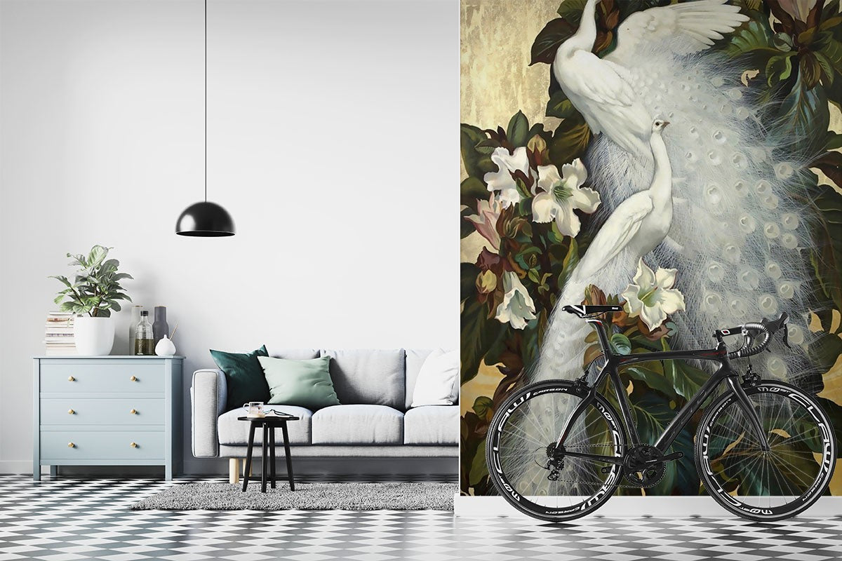 White Peacock Animals White Wallpaper Mural,Self-Adhesive Peel And Stick 3D Wall Paper,Designer Bedroom Wall Decor