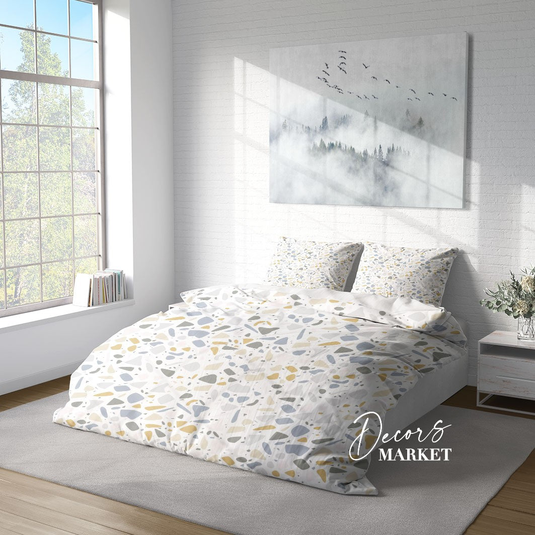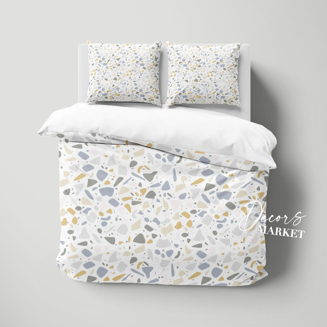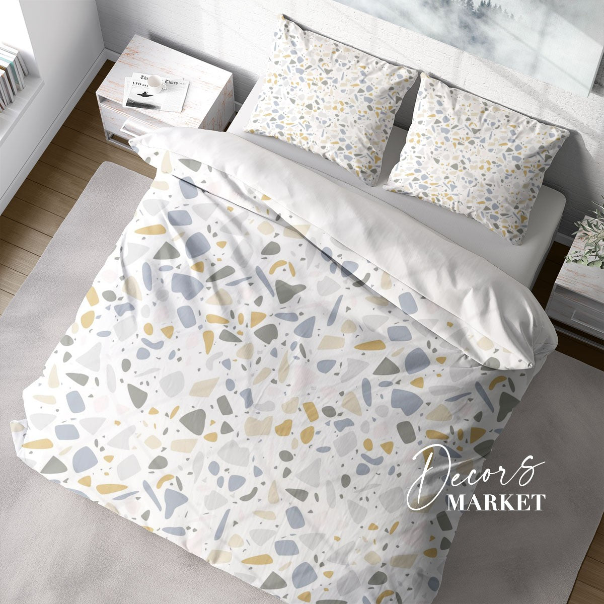 White Terrazzo Dense Chips Duvet Cover Set w Pillowcases, White Texture Marble 3D Quilt Cover, 3pc Single Double Queen King Size Doona Cover