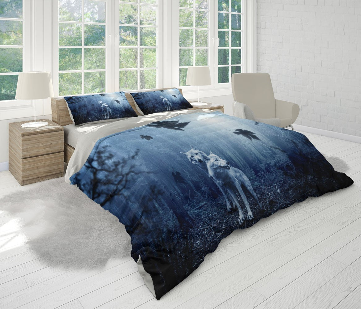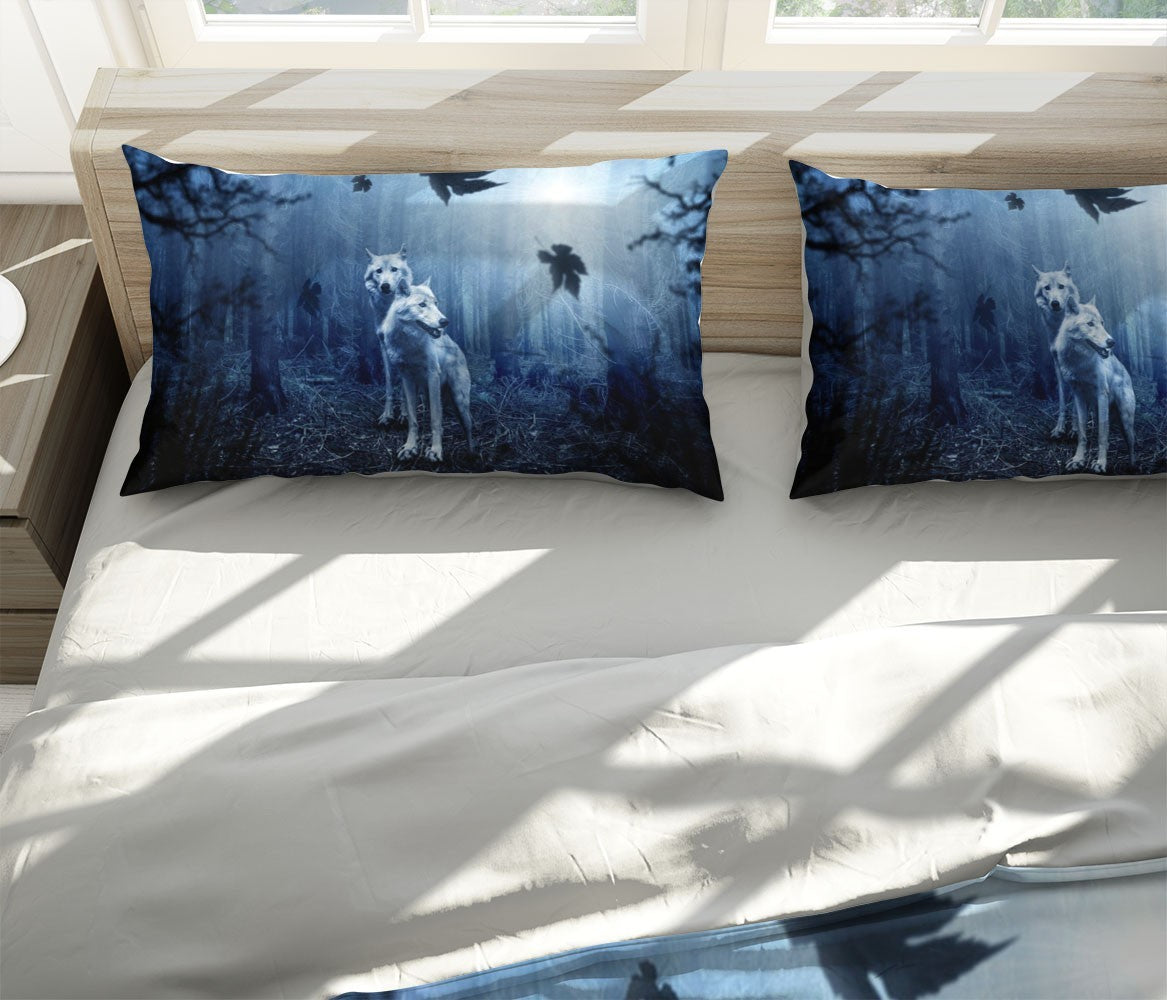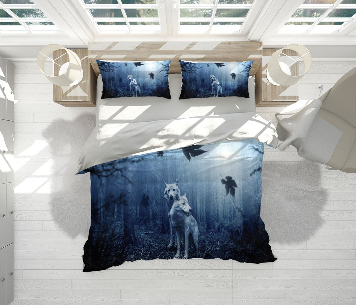 White Wolves Duvet Cover Set W Pillow Cover, Blue Animals Wild Animals 3D Quilt Cover, Single Double Queen King Size Doona Cover