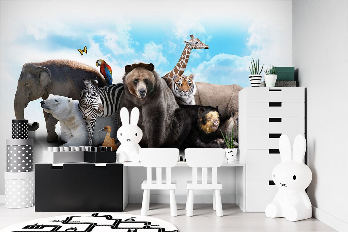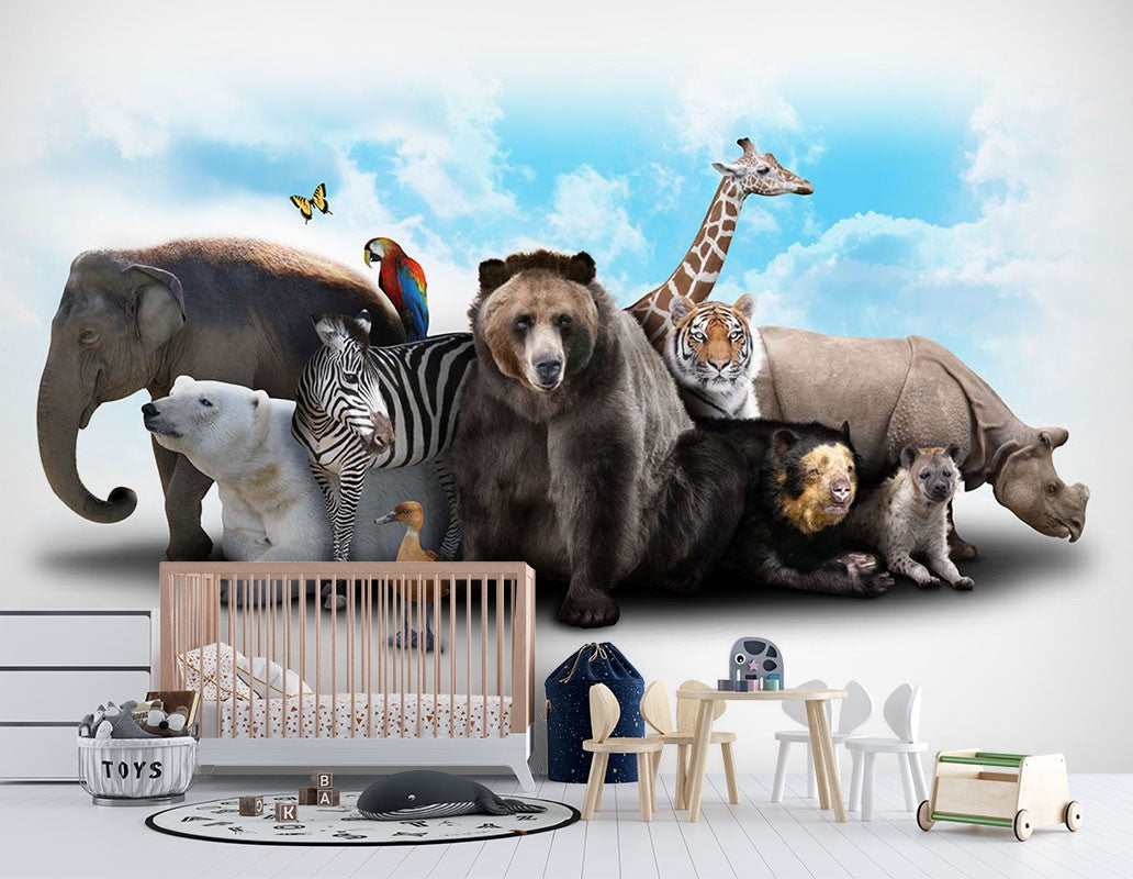 Wild Animals Kids Animal White Wallpaper Mural,Self-Adhesive Peel And Stick 3D Wall Paper,Bedroom Removable Wall Decor