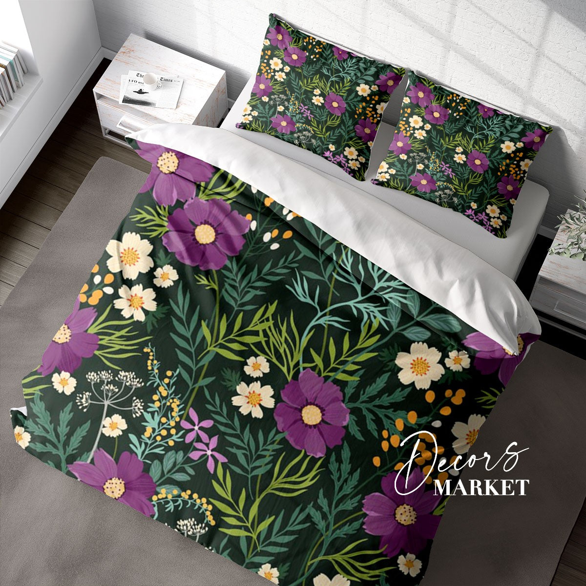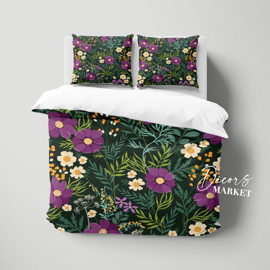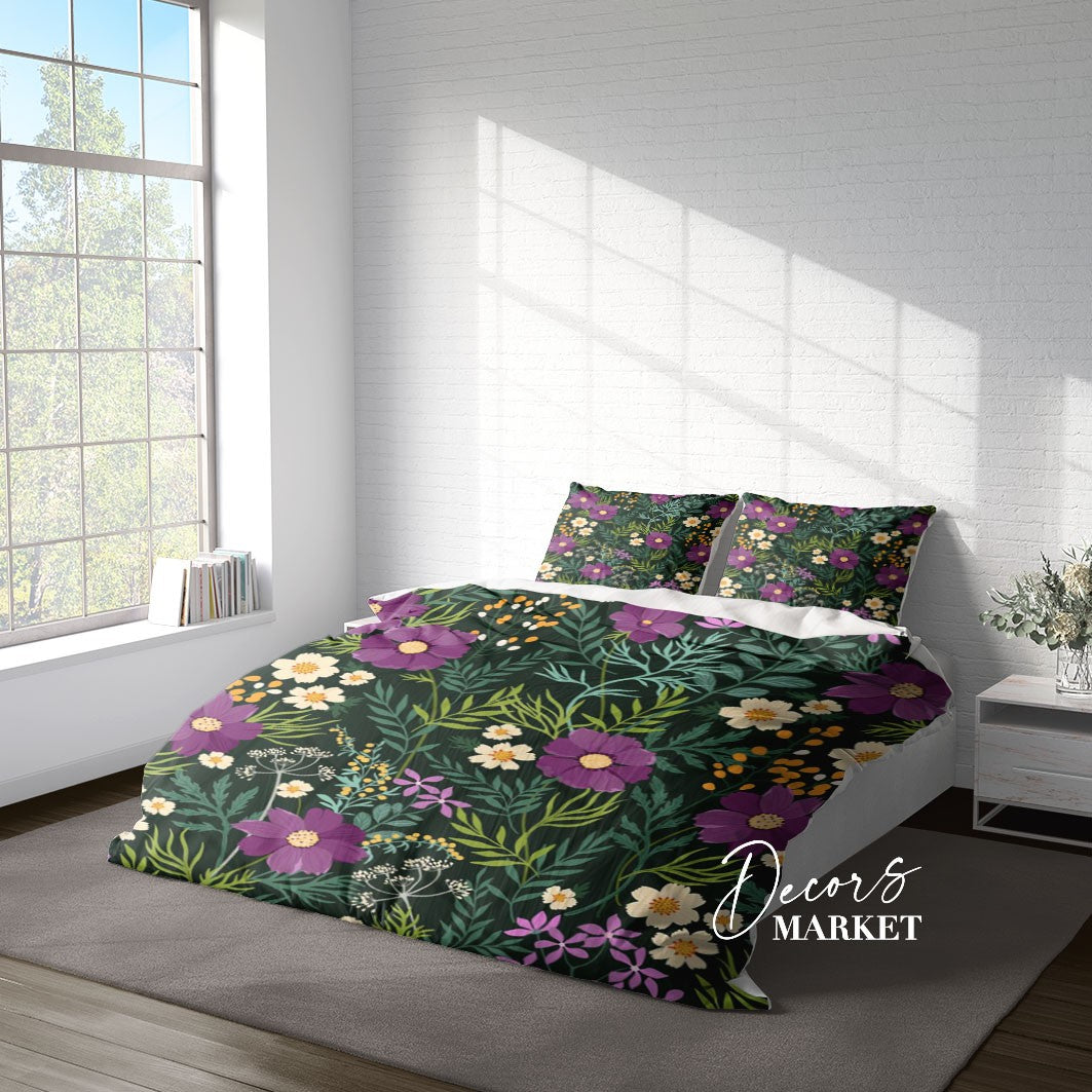 Wild Flower Field Duvet Cover Set w Pillowcases, Purple Floral Flowers 3D Quilt Cover, 3pc Single Double Queen King Size Doona Cover